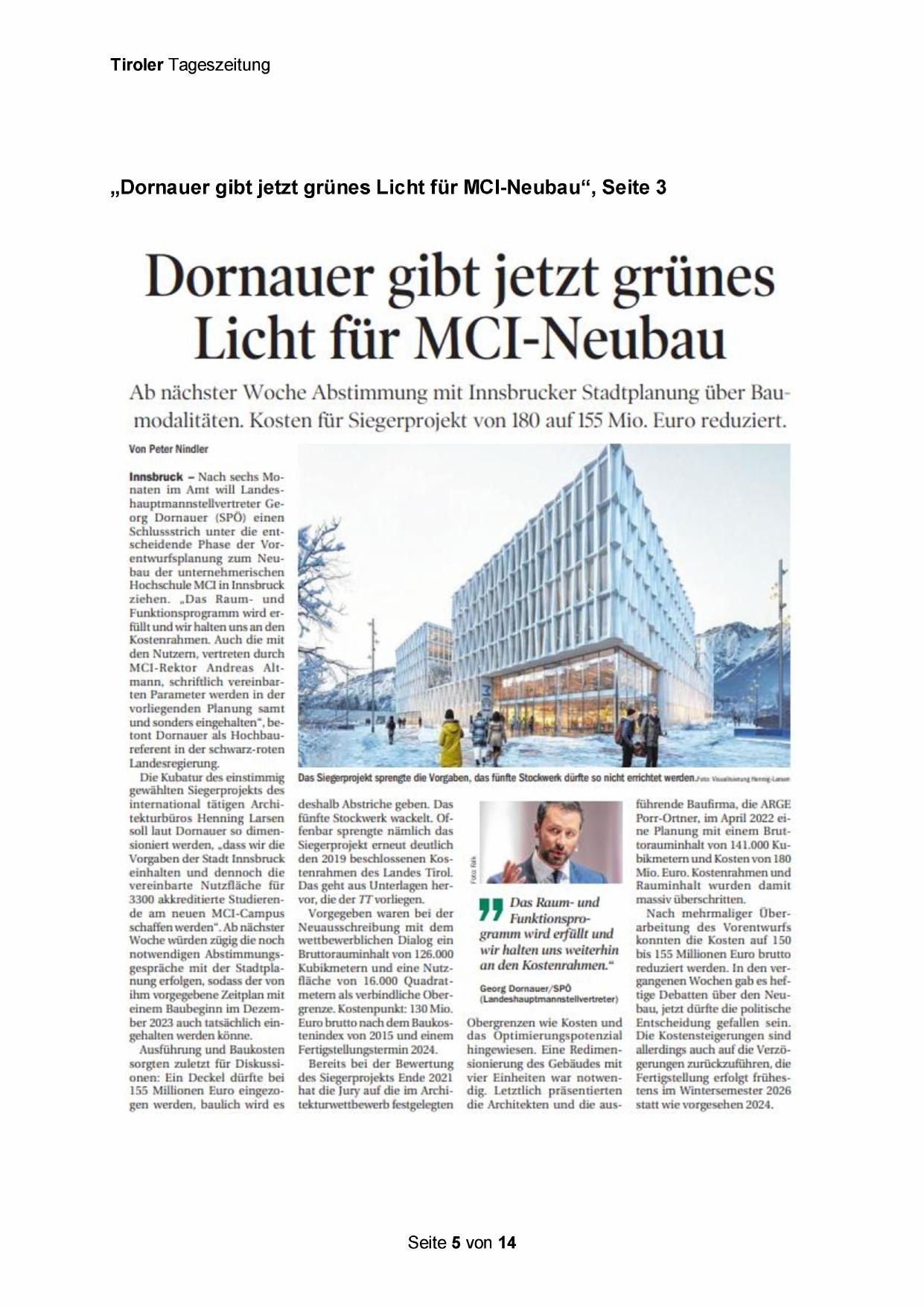 „Dornauer gibt jetzt grünes Licht für MCI-Neubau“, Seite 3