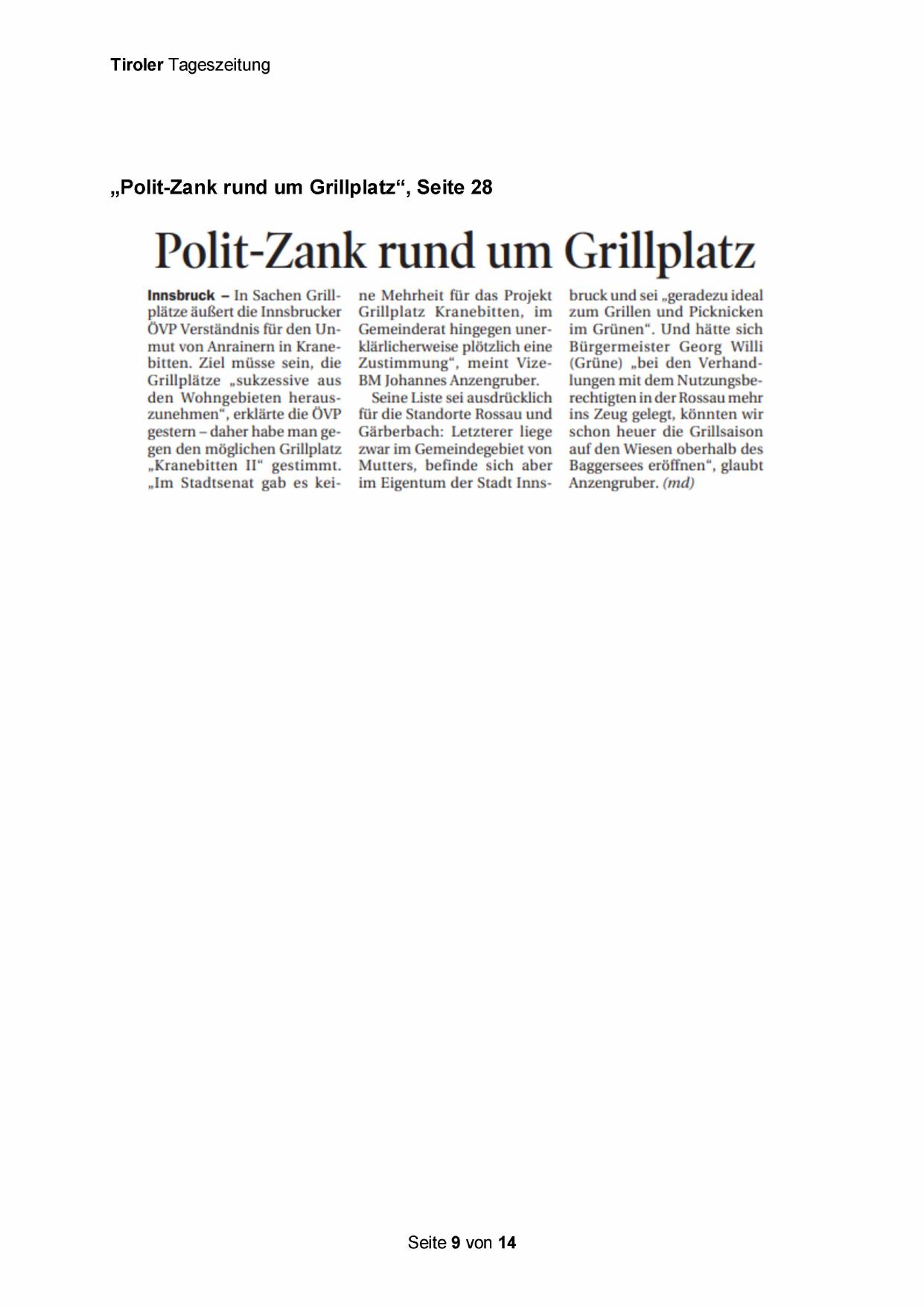 Innsbruck —- In Sachen Grillplätze äußert die Innsbrucker