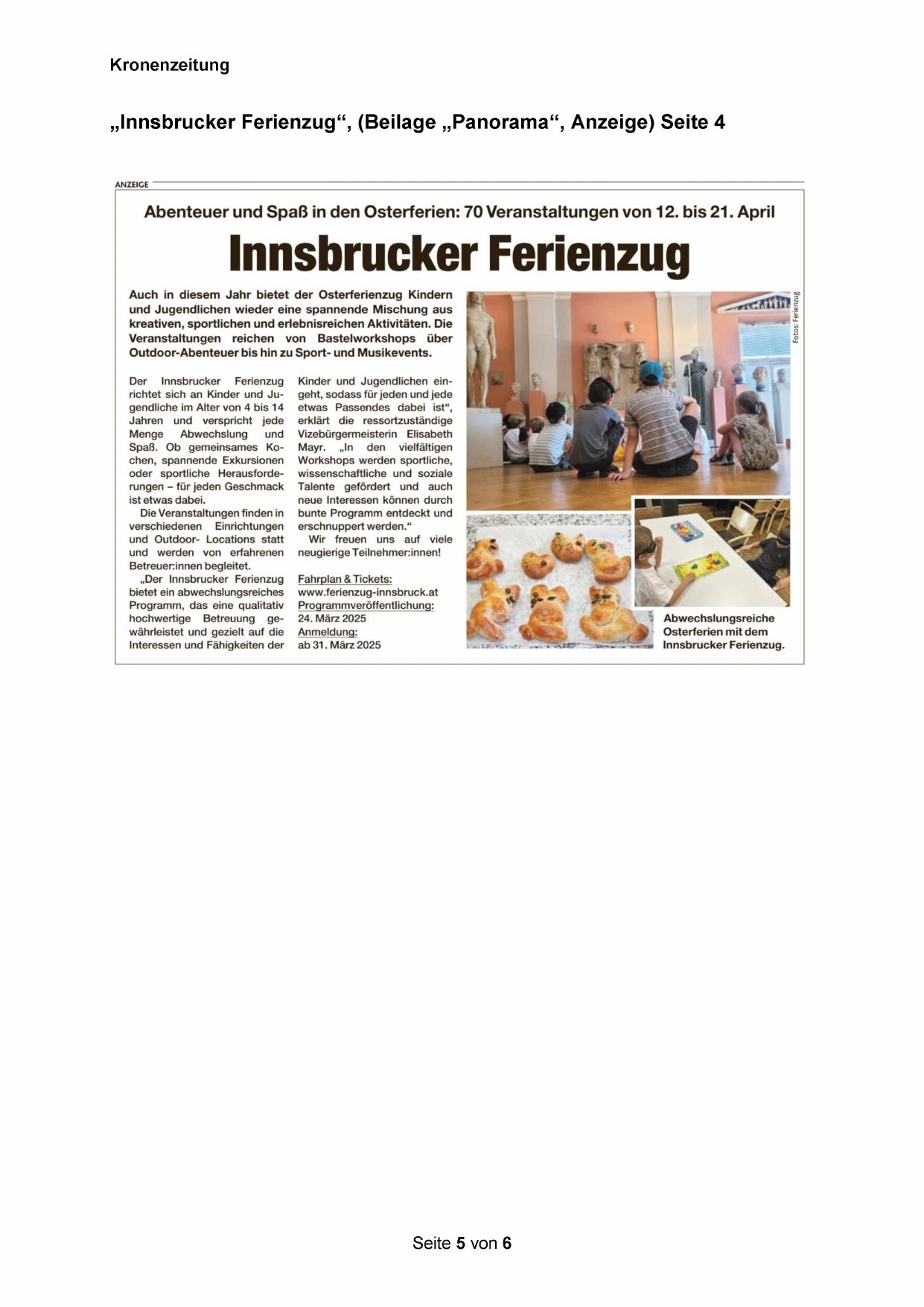 „Innsbrucker Ferienzug“, (Beilage „Panorama“‘, Anzeige) Seite 4