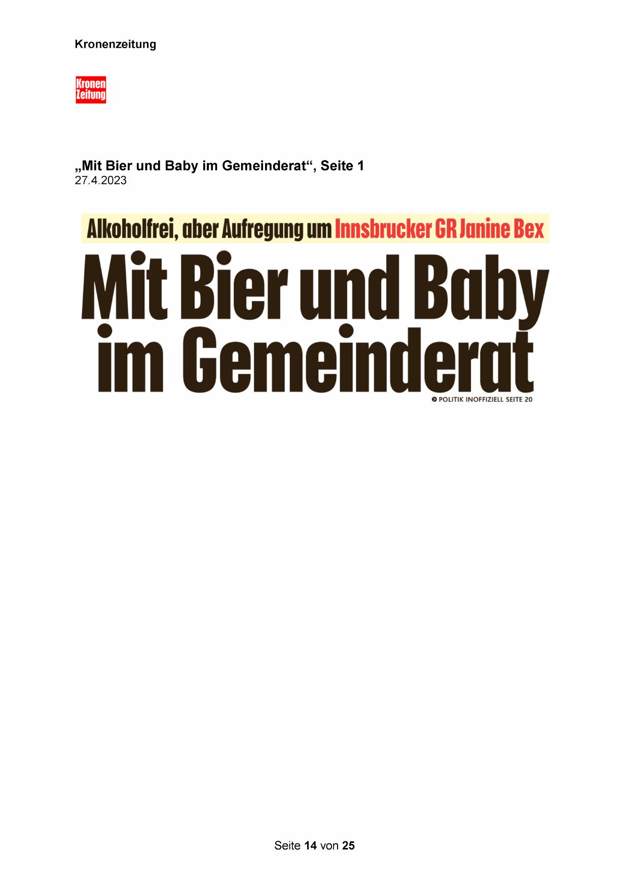 „Mit Bier und Baby im Gemeinderat“, Seite 1