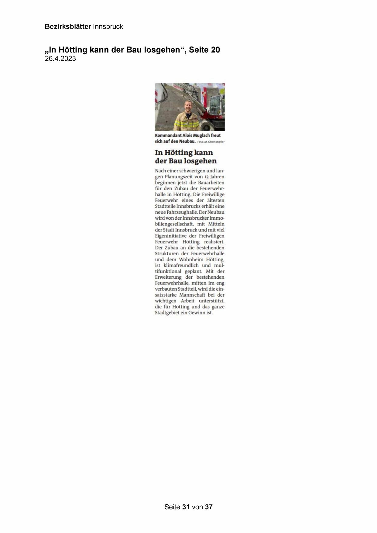„In Hötting kann der Bau losgehen“, Seite 20