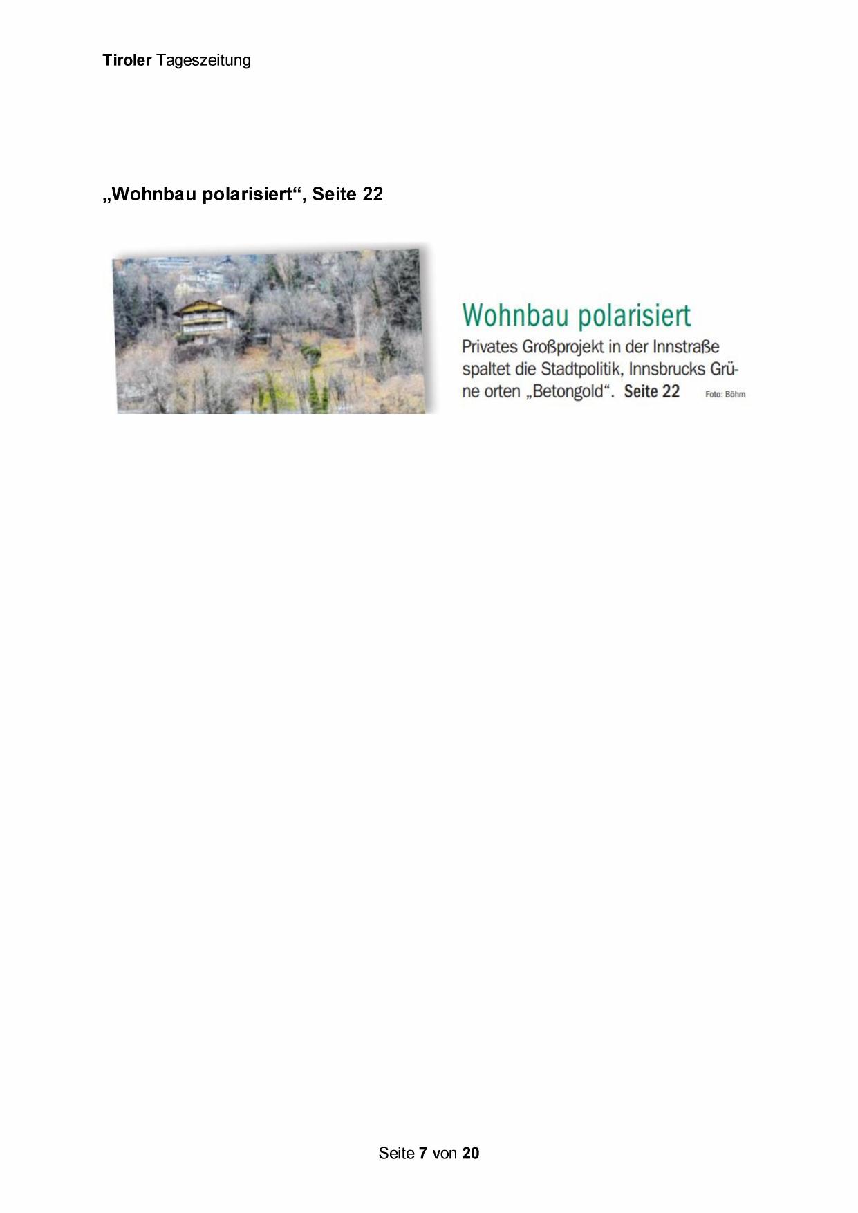 spaltet die Stadtpolitik, Innsbrucks Grüne orten „Betongold“. Seite 22 Foto: 8öhm