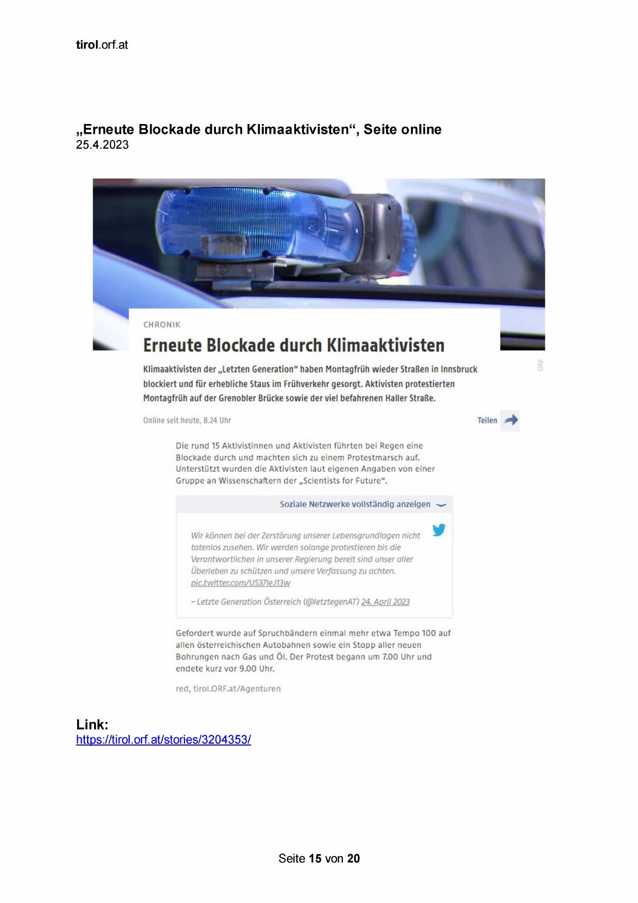 - Letzte Generation Österreich (@letztegenAT) 24. April 2023