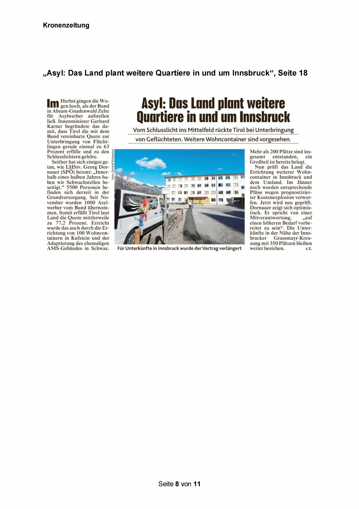 „Asyl: Das Land plant weitere Quartiere in und um Innsbruck“, Seite 18