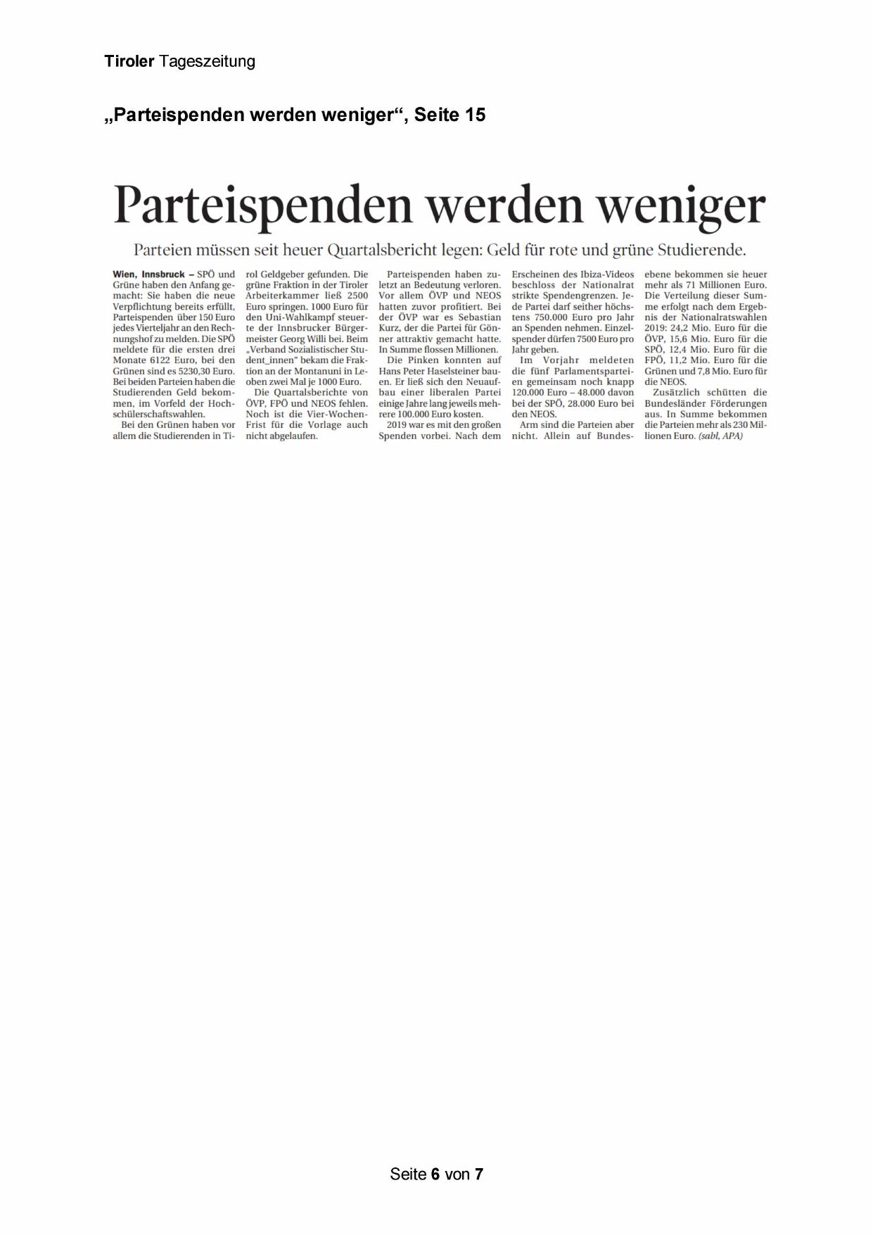 jedes Vierteljahr an den Rechnungshof zu melden. Die SPÖ