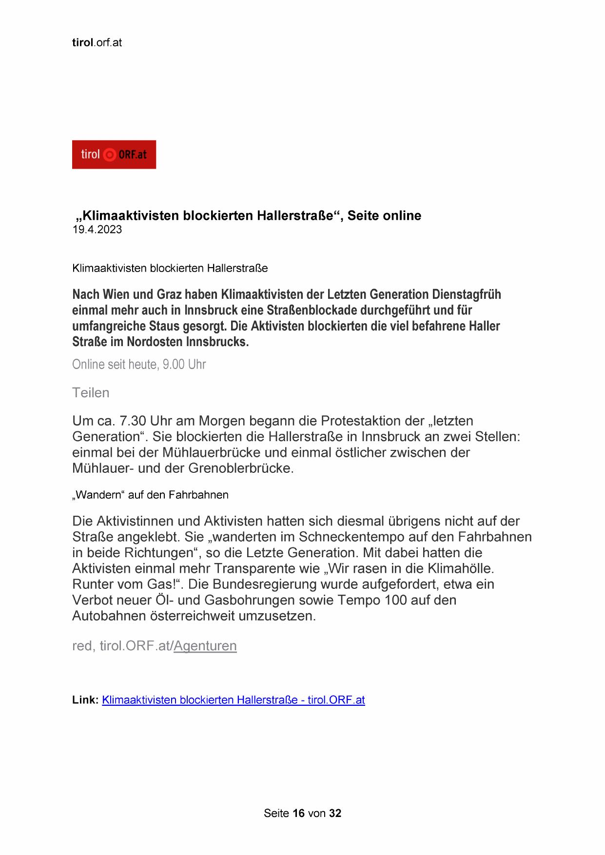Link: Klimaaktivisten blockierten Hallerstraße - tirol.ORF.at