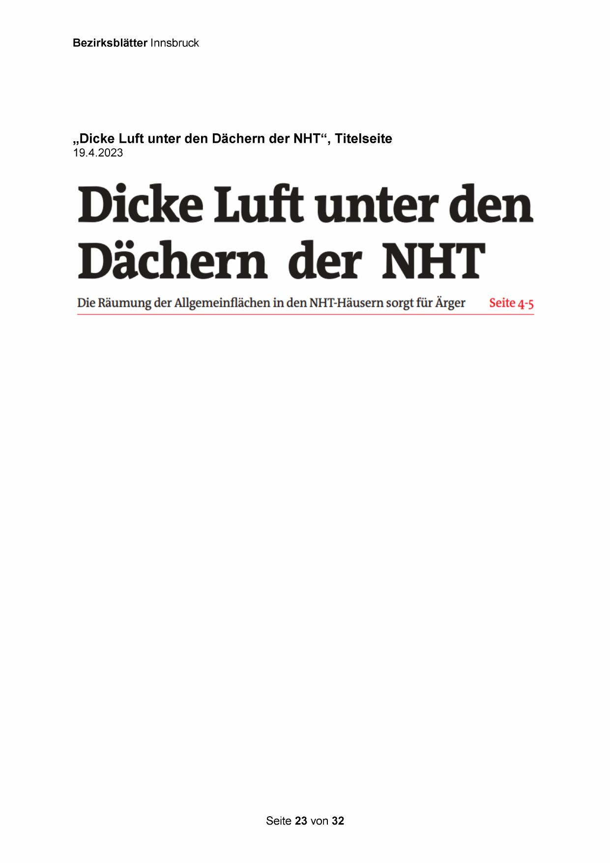 „Dicke Luft unter den Dächern der NHT“, Titelseite