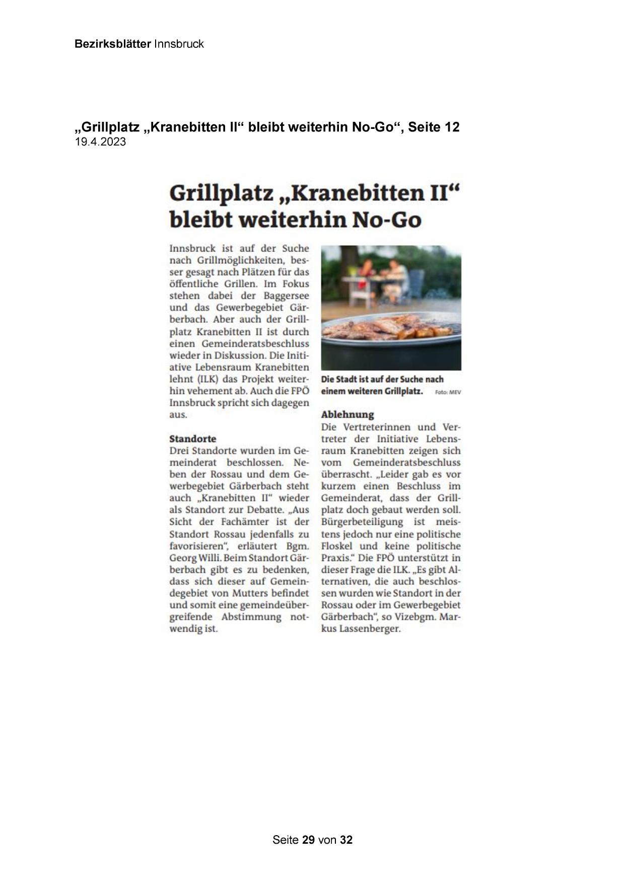 „Grillplatz „Kranebitten II“ bleibt weiterhin No-Go“, Seite 12