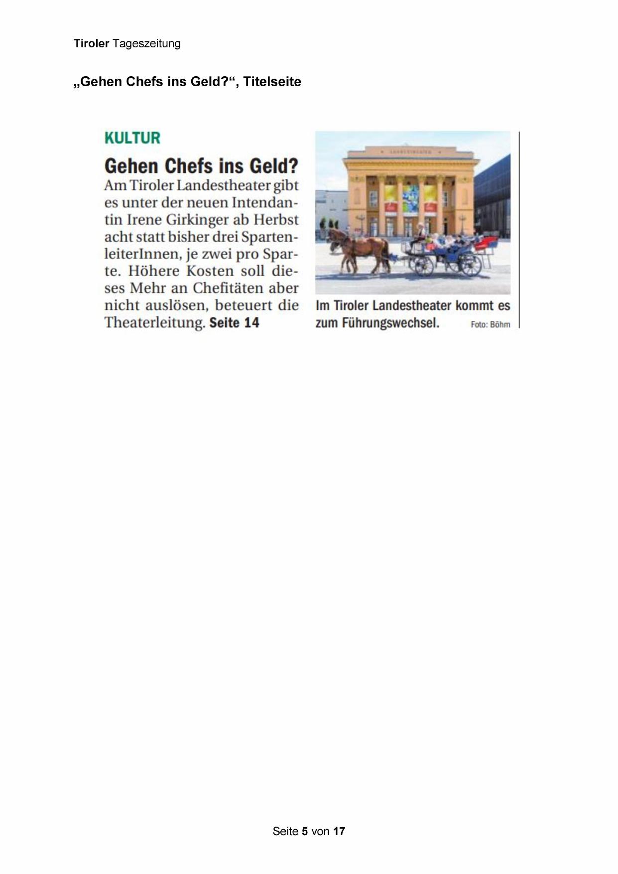 nicht auslösen, beteuert die Im Tiroler Landestheater kommt es
