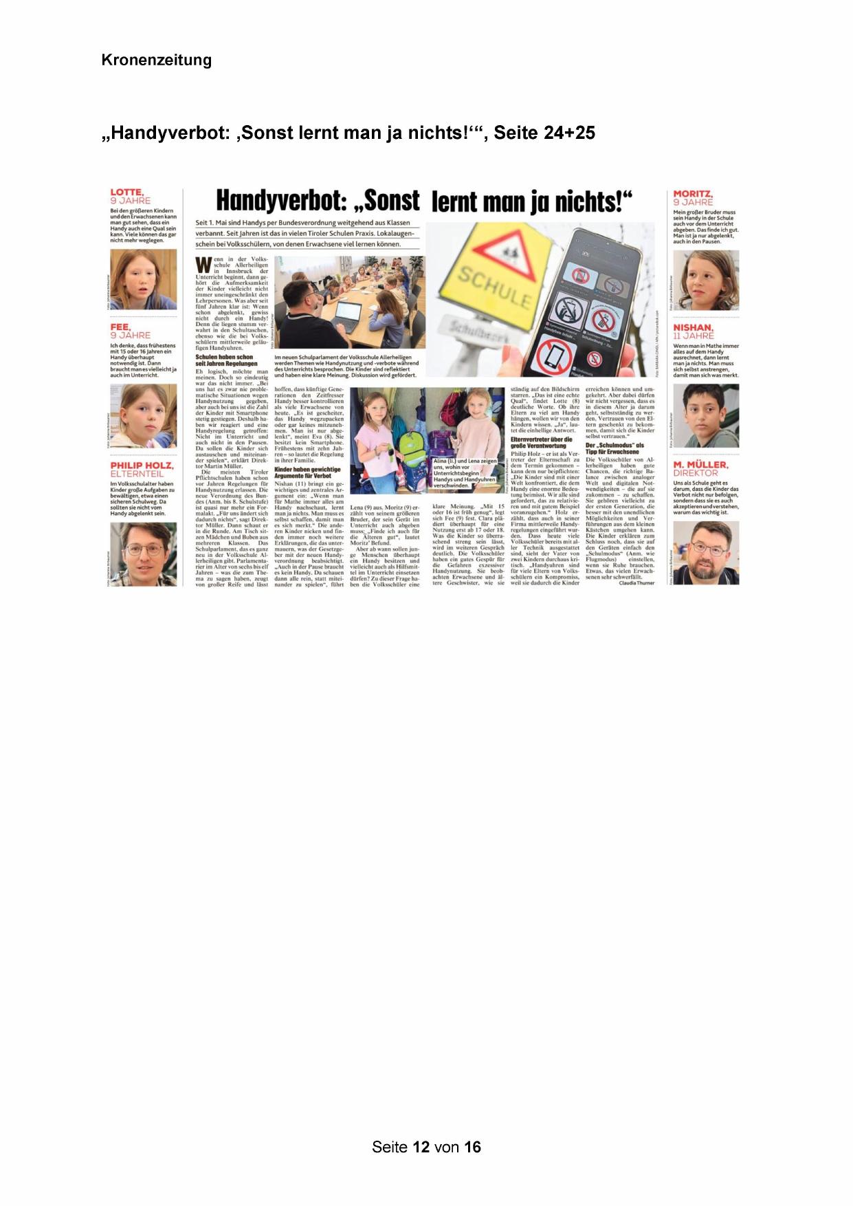 „Handyverbot: ‚Sonst lernt man ja nichts!‘“, Seite 24+25