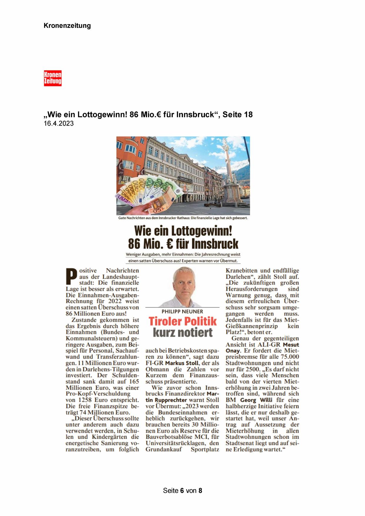 „Wie ein Lottogewinn! 86 Mio.€ für Innsbruck“, Seite 18