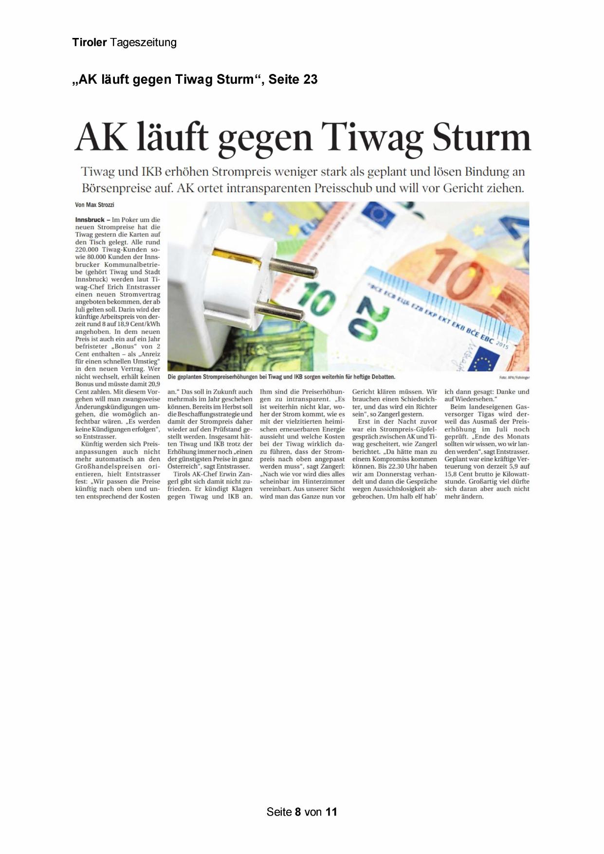 war ein Strompreis-Gipfelgespräch zwischen AK und Tiwag gescheitert, wie Zangerl