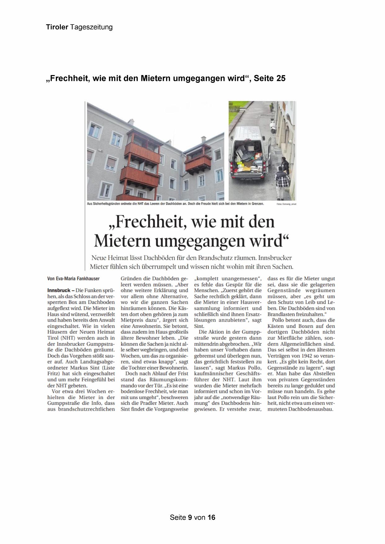 der Innsbrucker Gumppstraße die Dachböden geräumt.