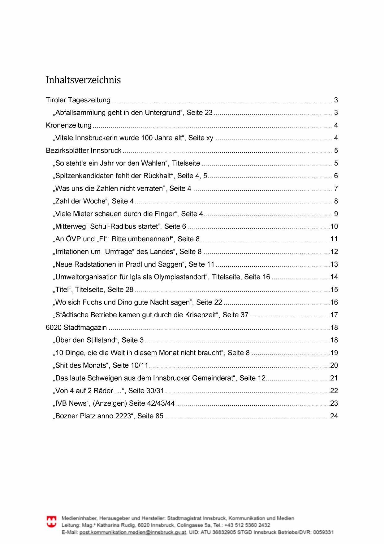 Medieninhaber, Herausgeber und Hersteller: Stadtmagistrat Innsbruck, Kommunikation und Medien
