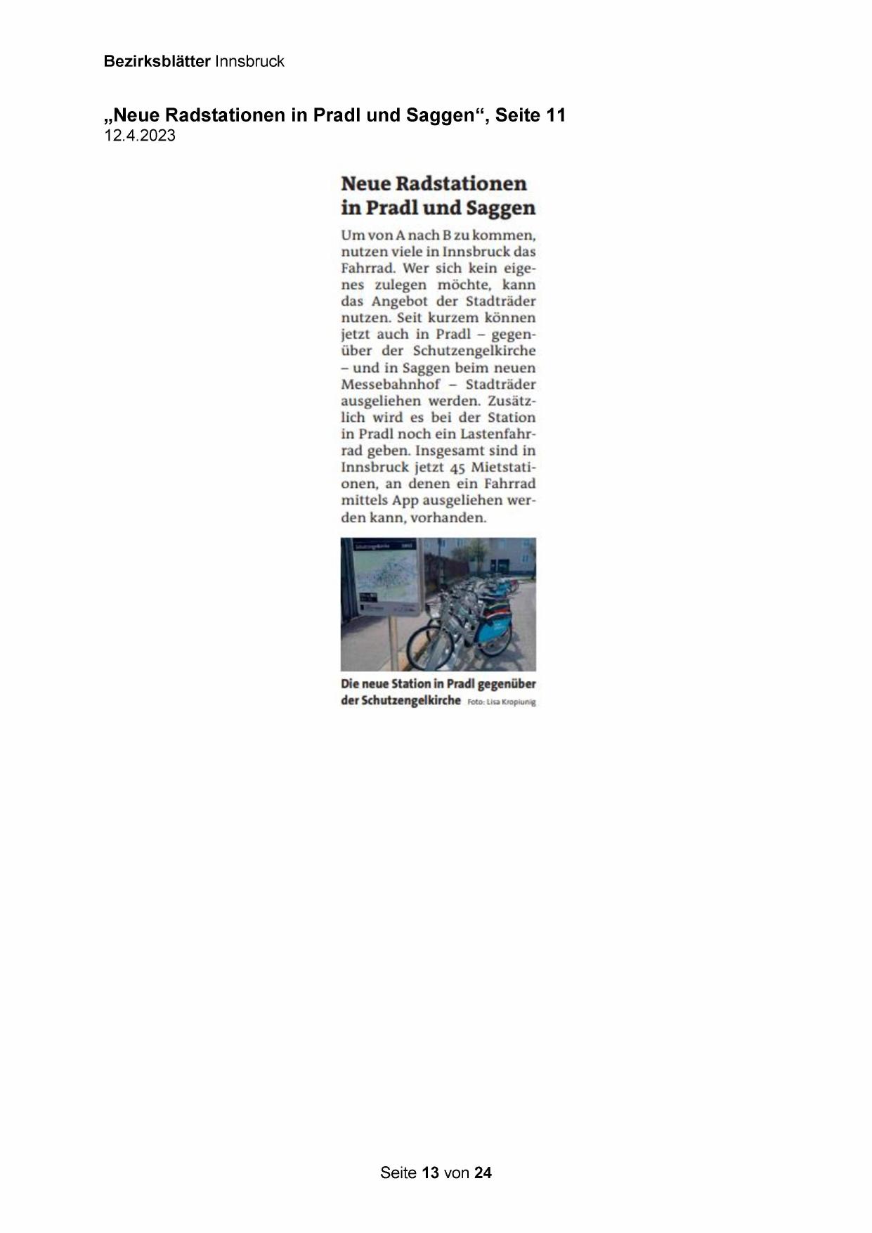 „Neue Radstationen in Pradl und Saggen“, Seite 11