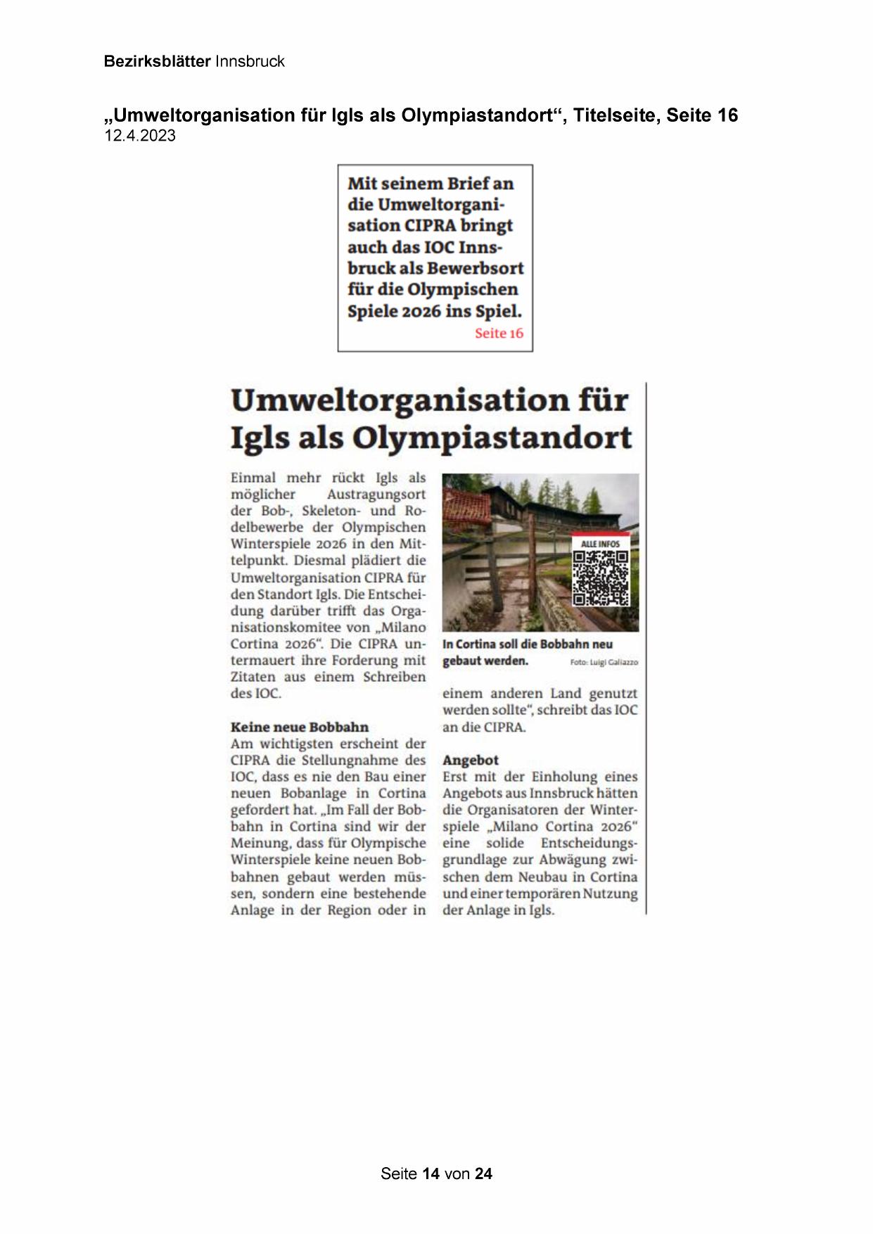 „Umweltorganisation für Igls als Olympiastandort“, Titelseite, Seite 16