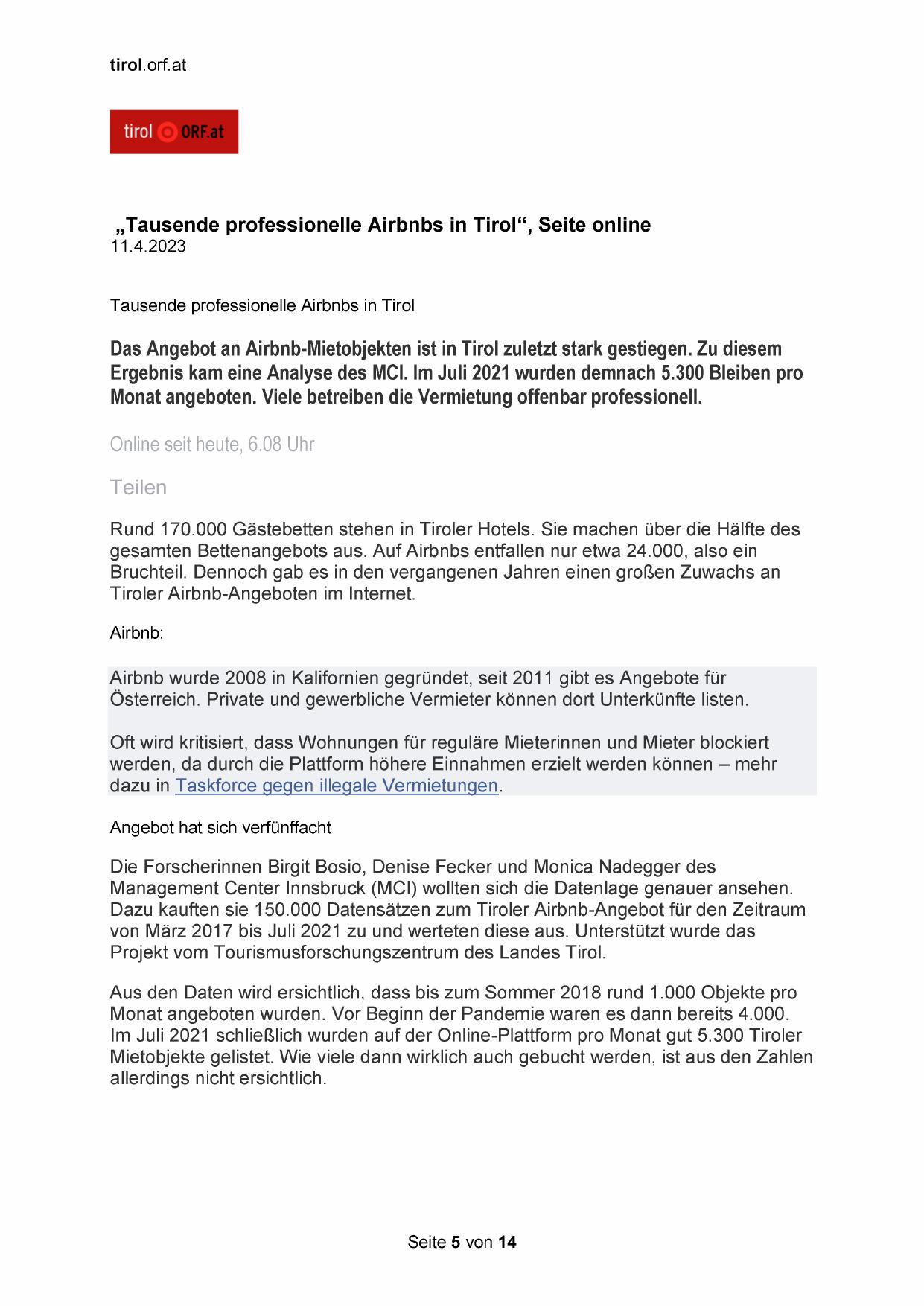 „Tausende professionelle Airbnbs in Tirol‘“, Seite online