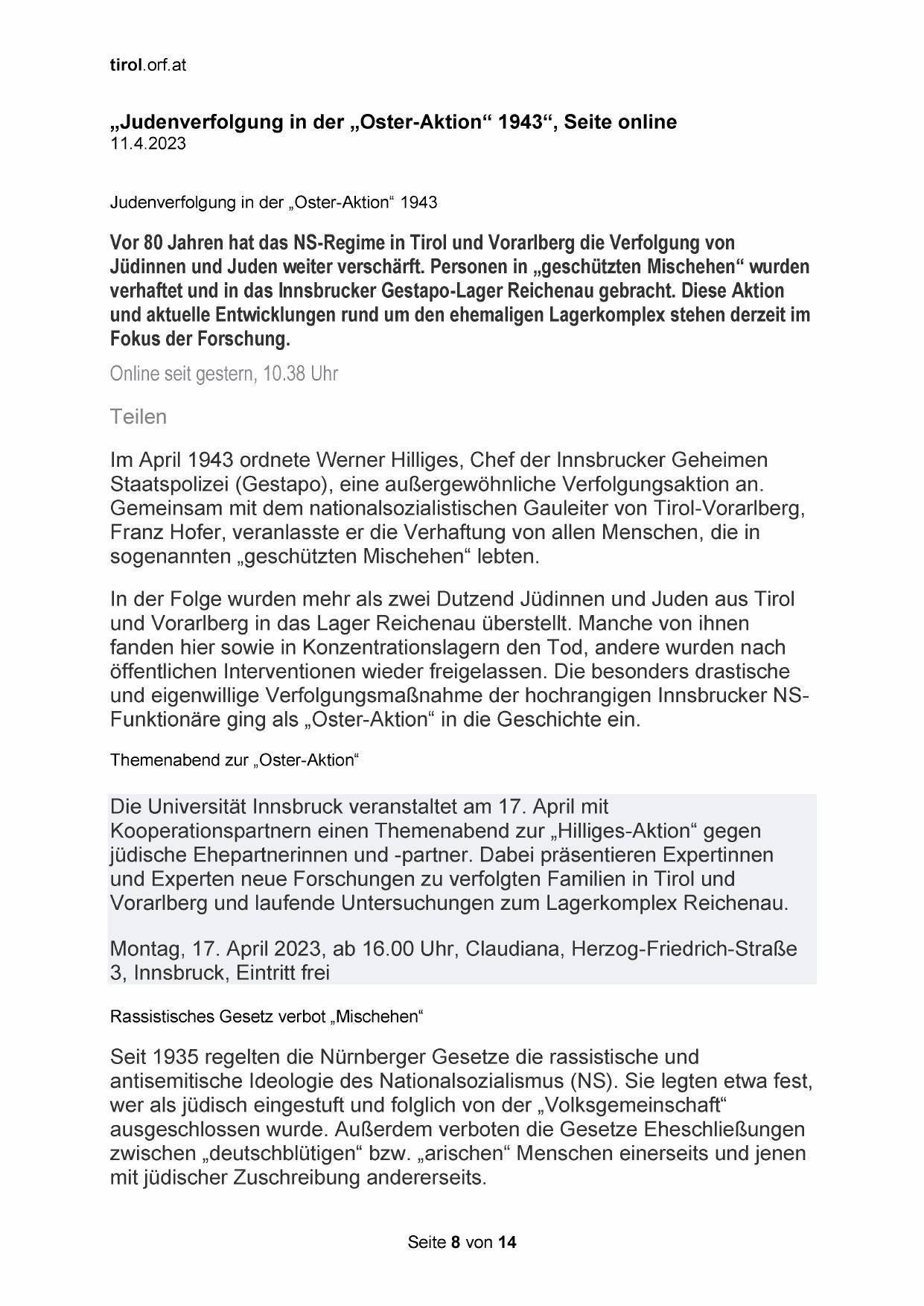 „Judenverfolgung in der „Oster-Aktion“ 1943“, Seite online