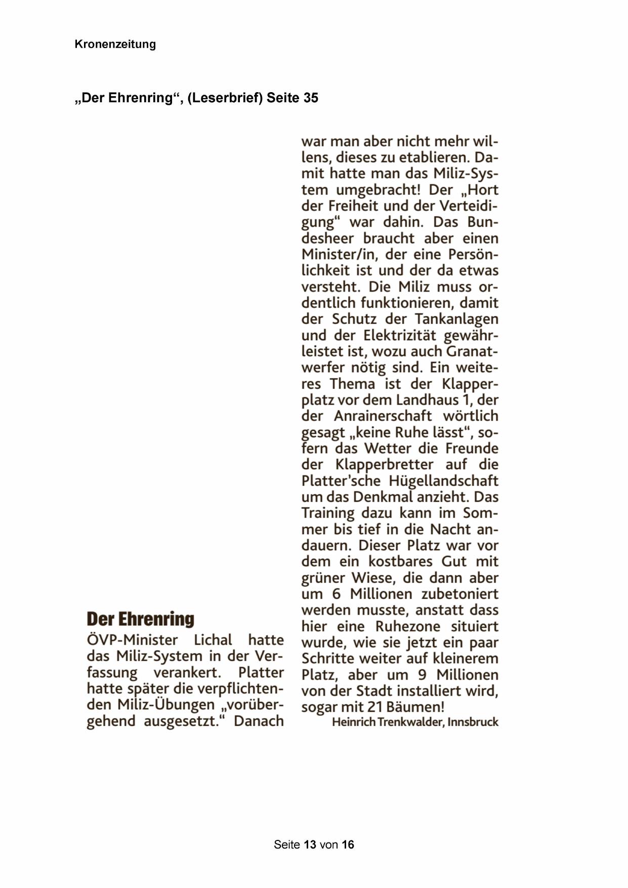 „Der Ehrenring“, (Leserbrief) Seite 35