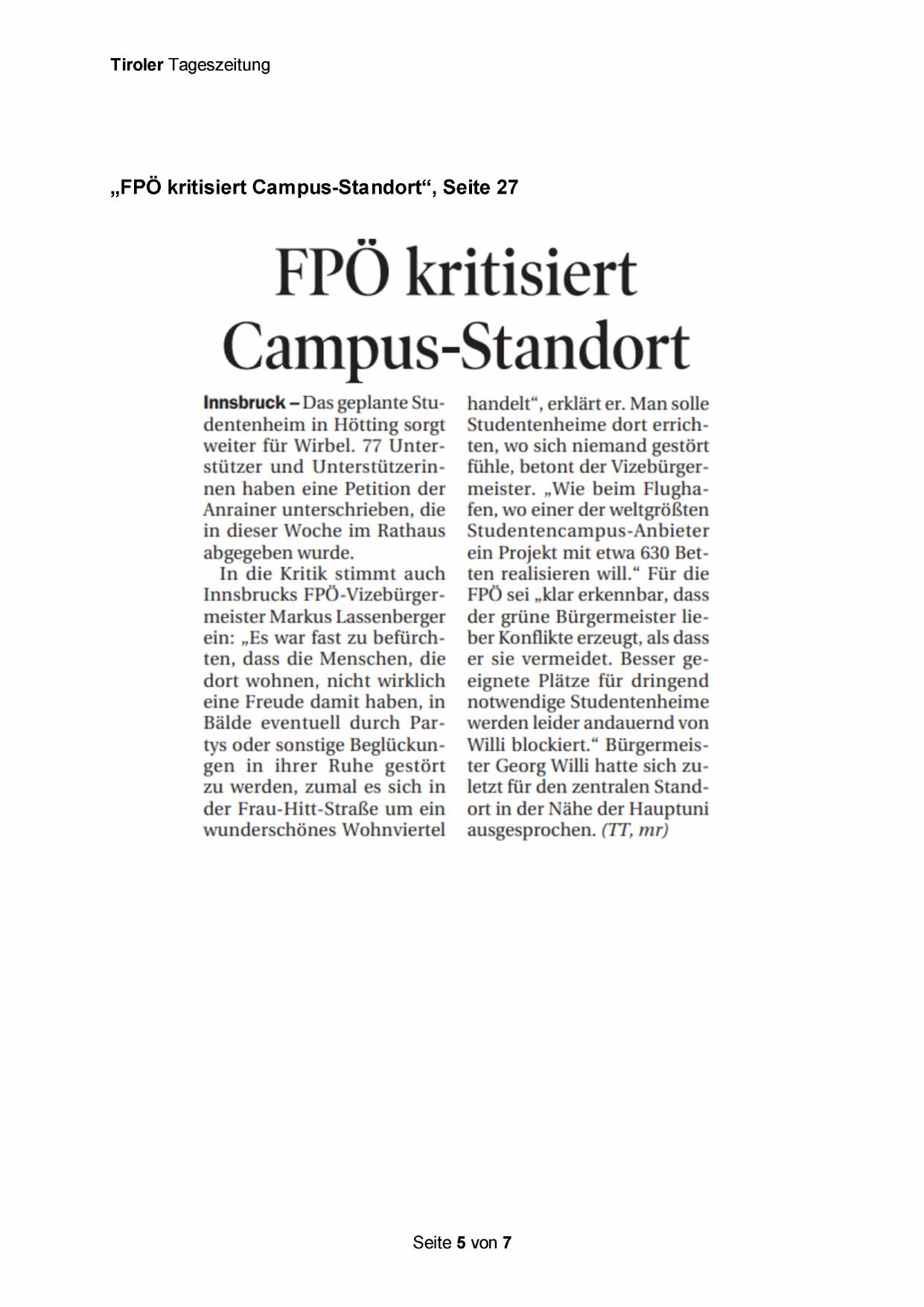 „FPÖ kritisiert Campus-Standort“, Seite 27