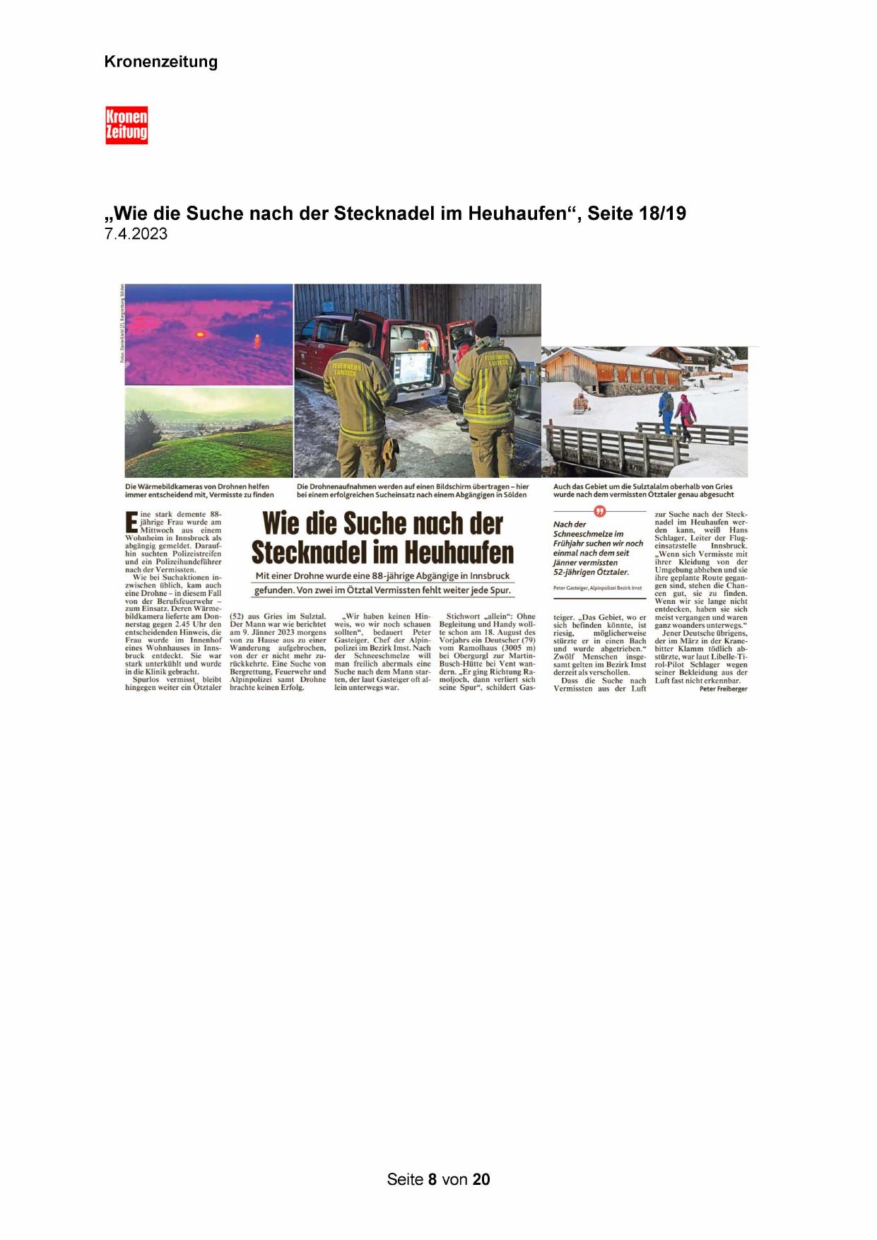 Mit einer Drohne wurde eine 88-jährige Abgängige in Innsbruck