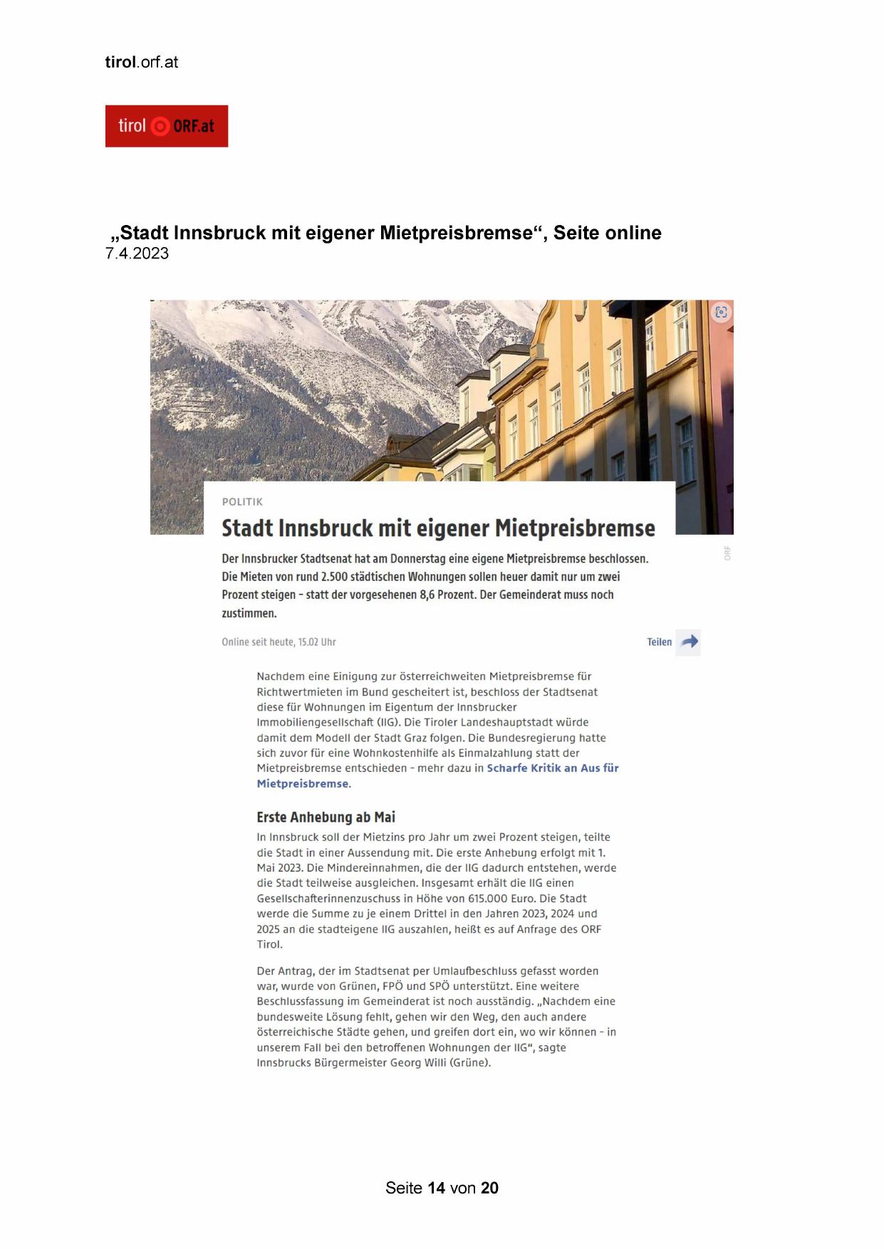 „Stadt Innsbruck mit eigener Mietpreisbremse“, Seite online