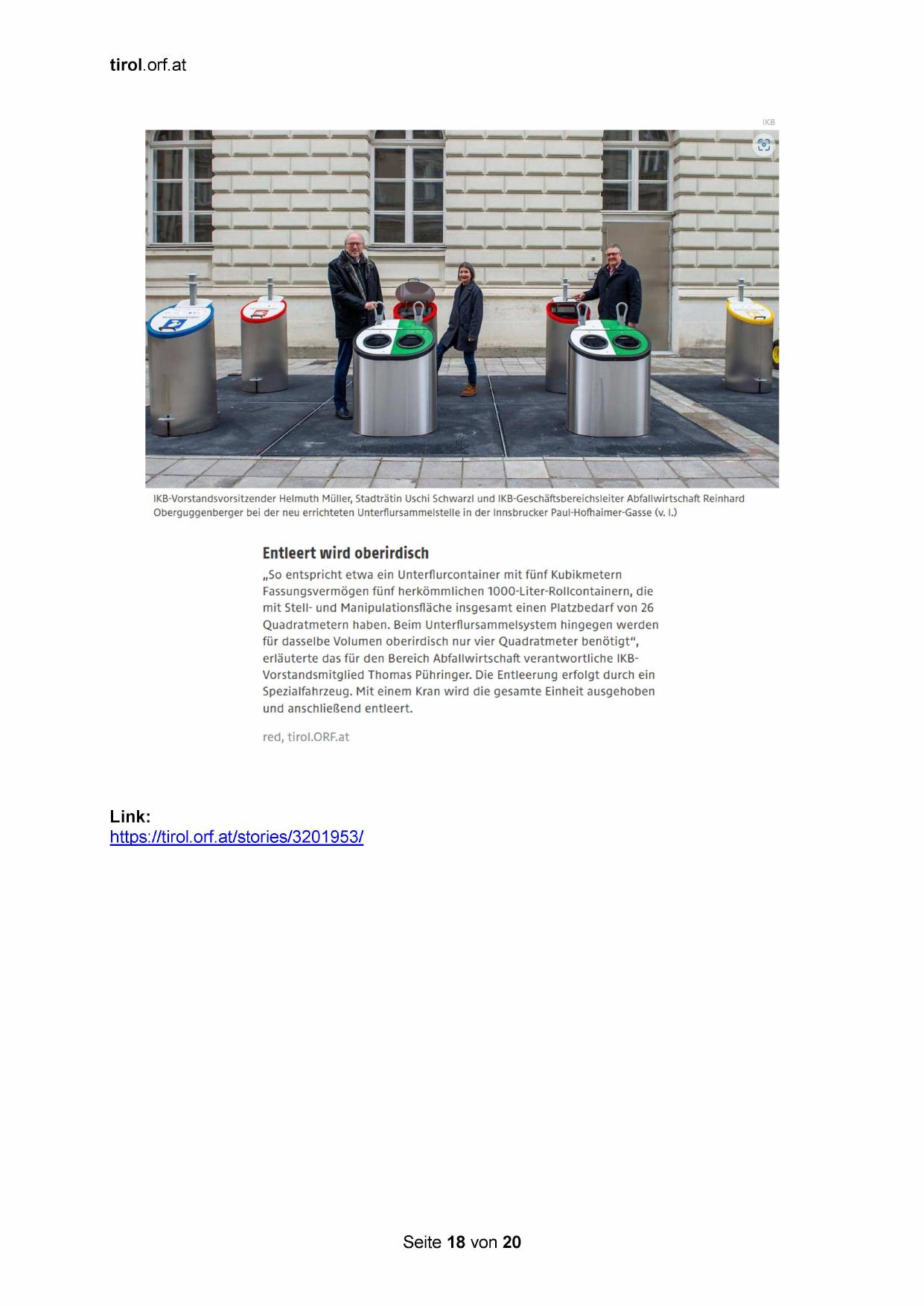 Oberguggenberger bei der neu errichteten Unterflursammelstelle in der Innsbrucker Paul-Hofhaimer-Gasse (v. I.)