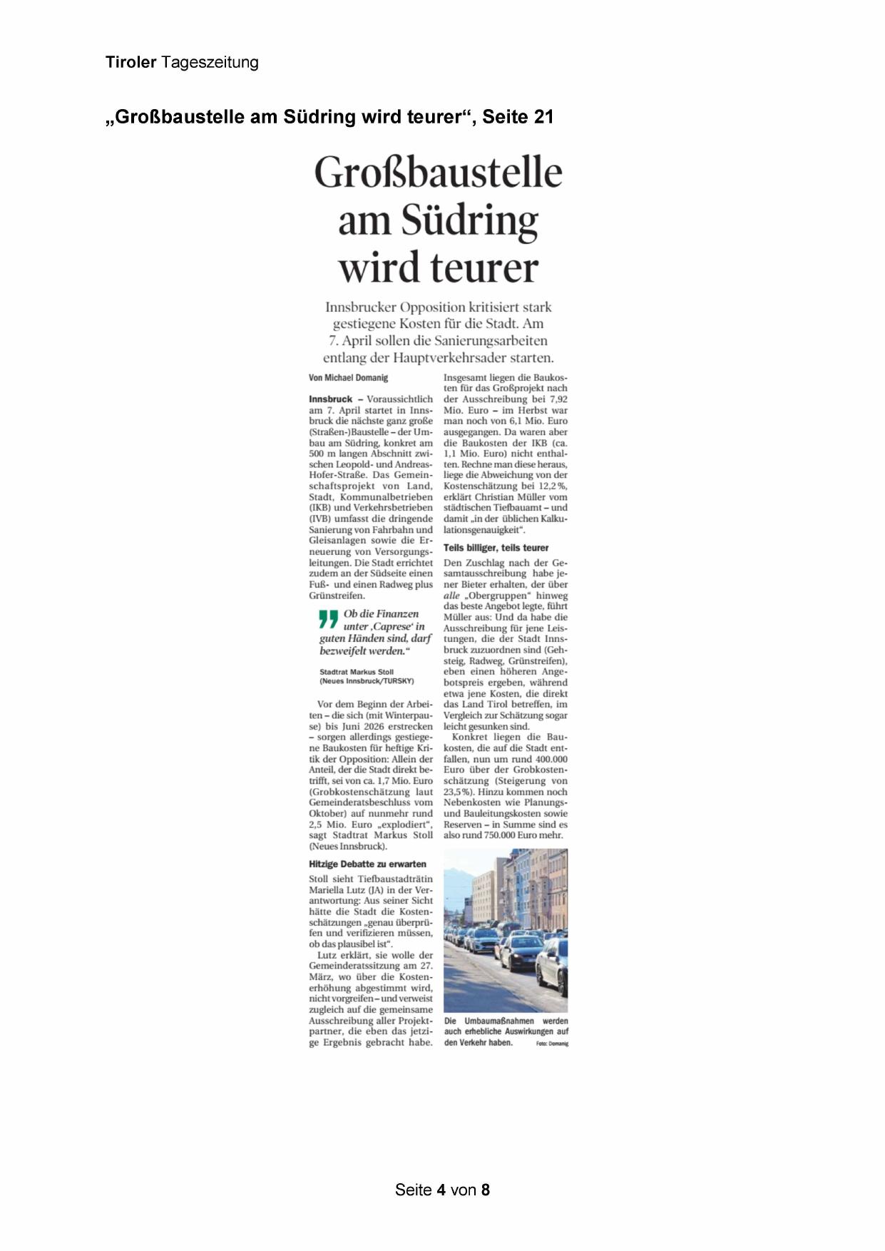 „Großbaustelle am Südring wird teurer“, Seite 21