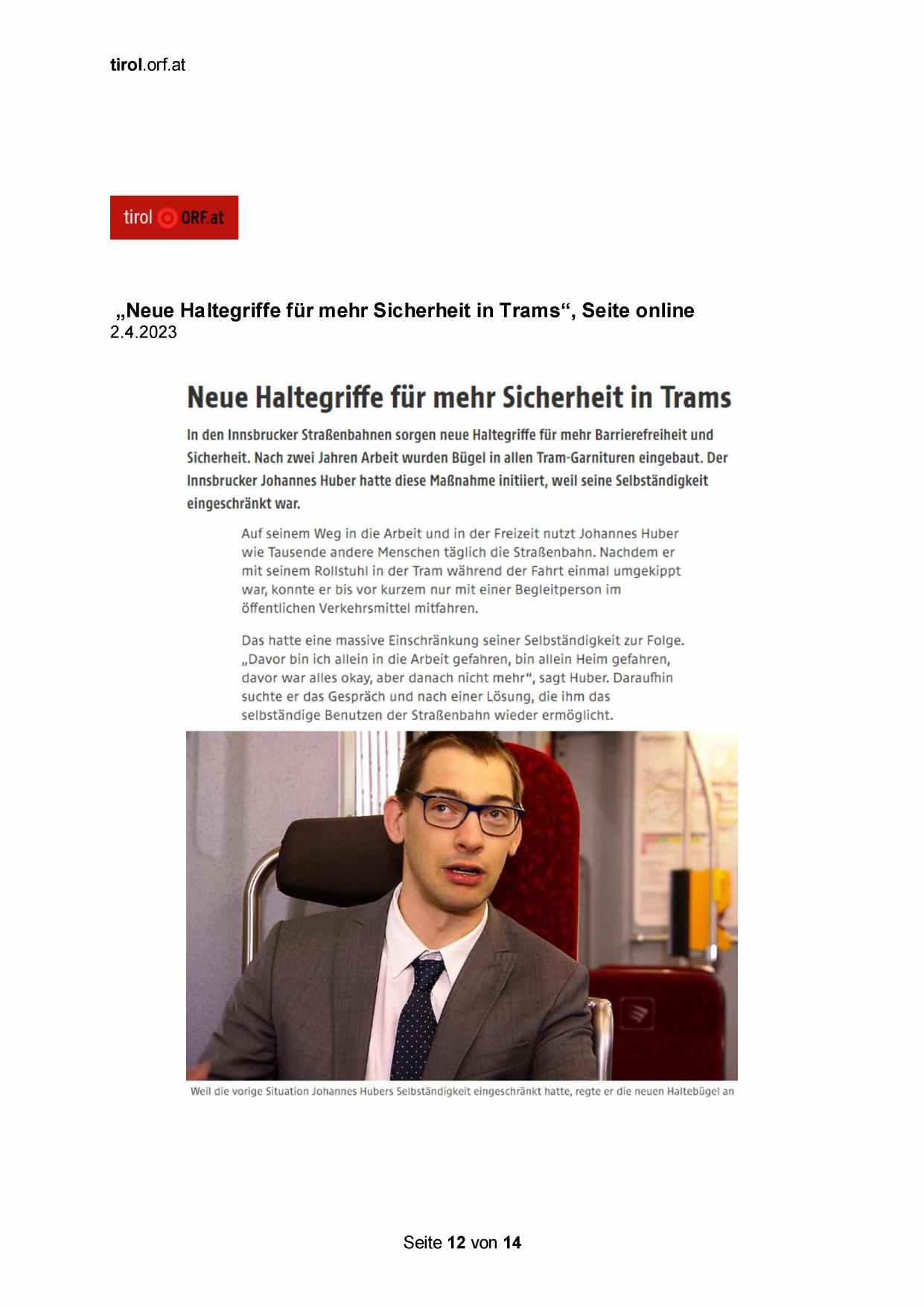 „Neue Haltegriffe für mehr Sicherheit in Trams“, Seite online