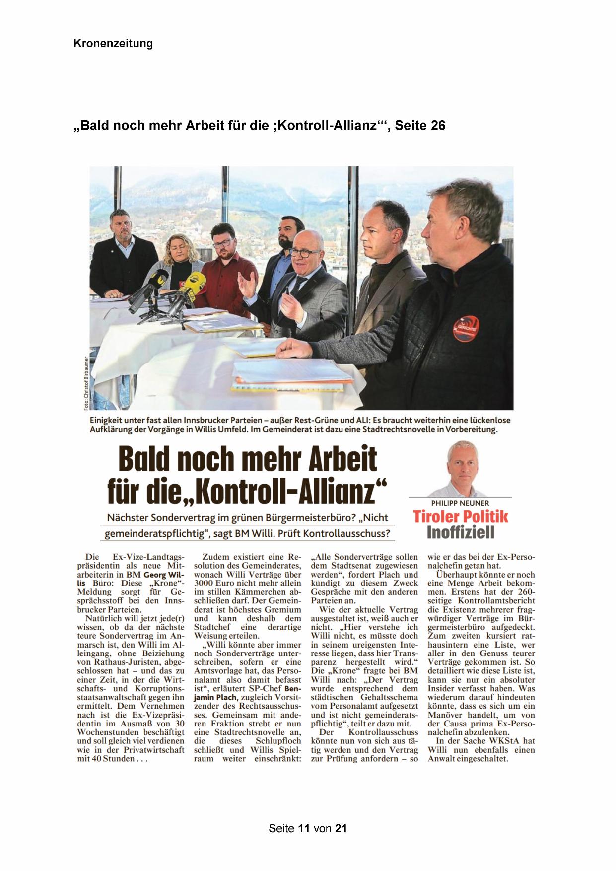 Aufklärung der Vorgänge in Willis Umfeld. Im Gemeinderat ist dazu eine Stadtrechtsnovelle in Vorbereitung.