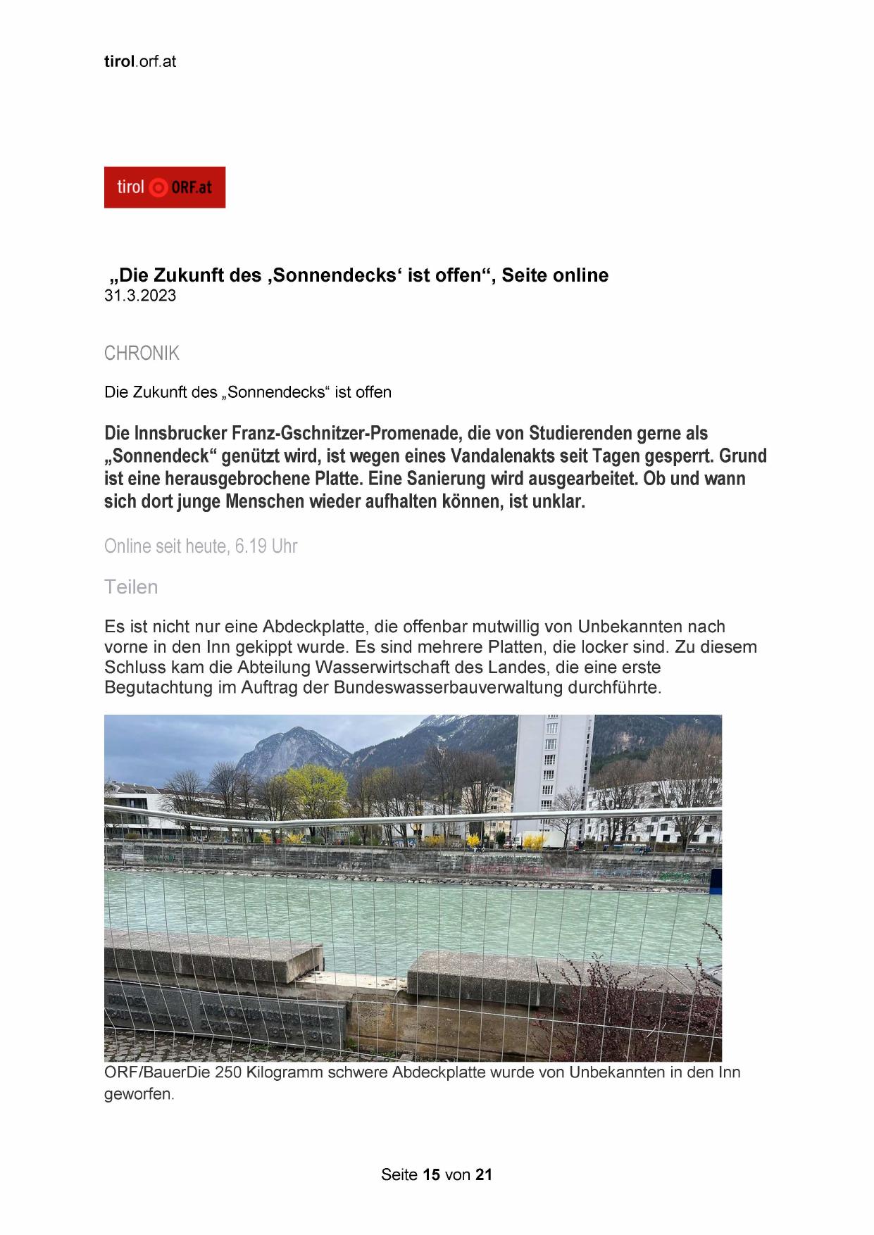 „Die Zukunft des ‚Sonnendecks‘ ist offen‘“, Seite online