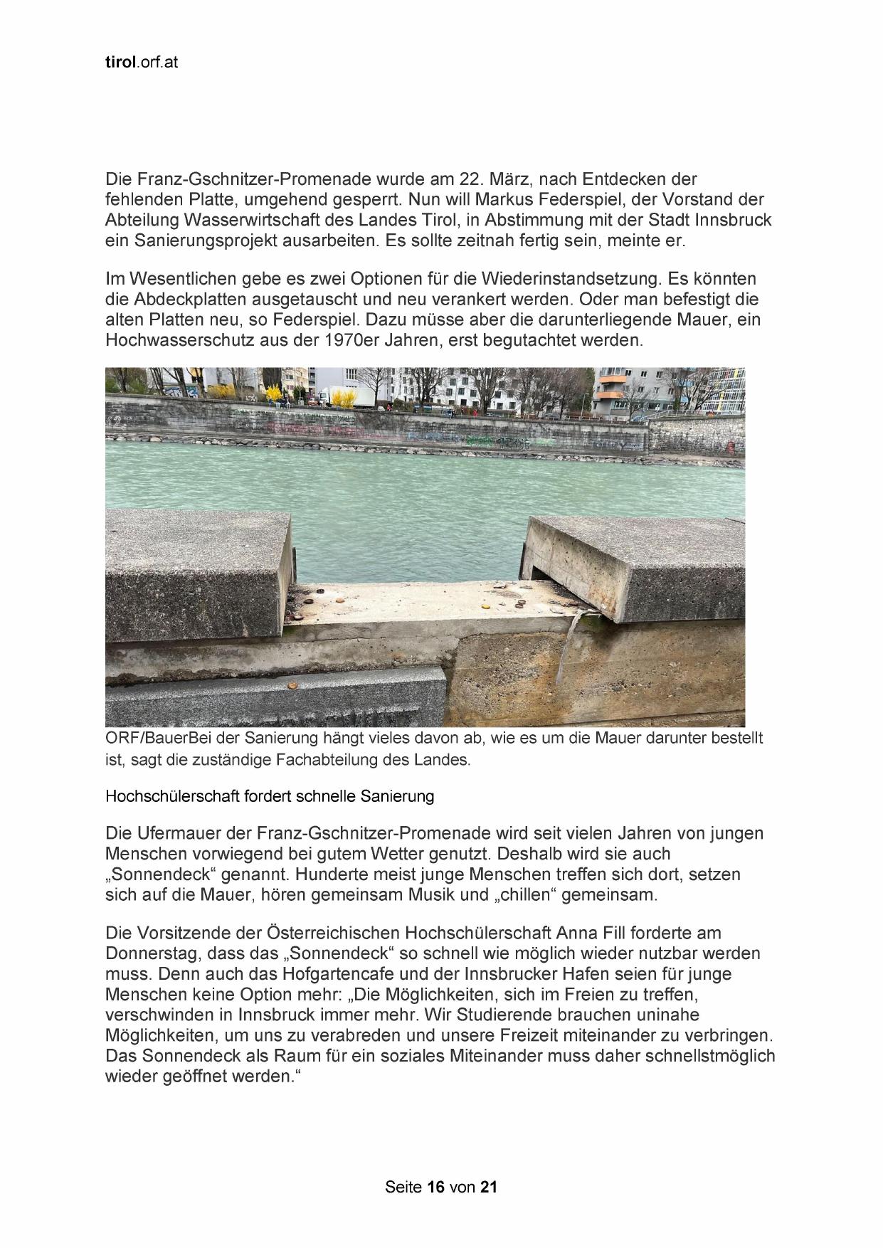 Abteilung Wasserwirtschaft des Landes Tirol, in Abstimmung mit der Stadt Innsbruck