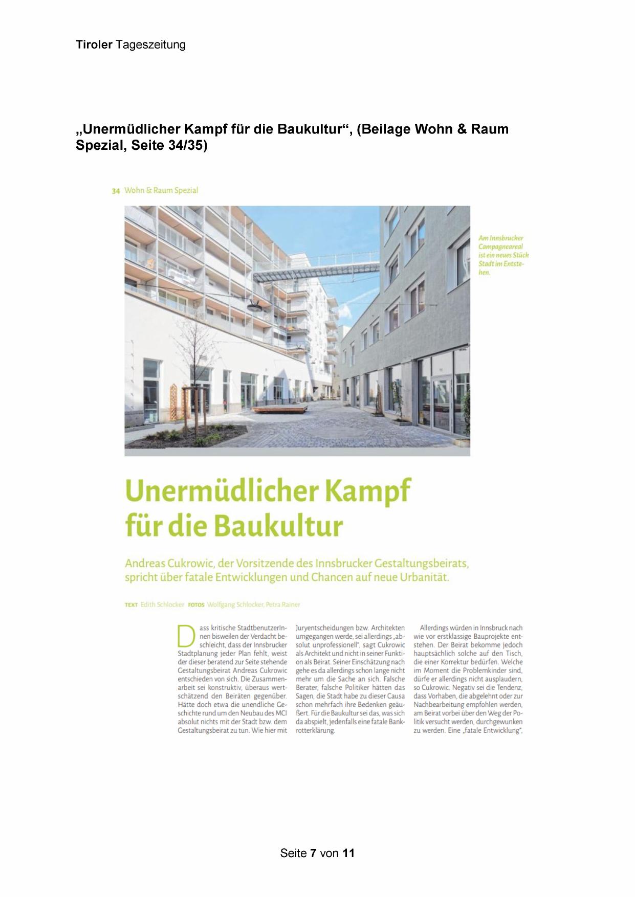 „Unermüdlicher Kampf für die Baukultur“, (Beilage Wohn & Raum