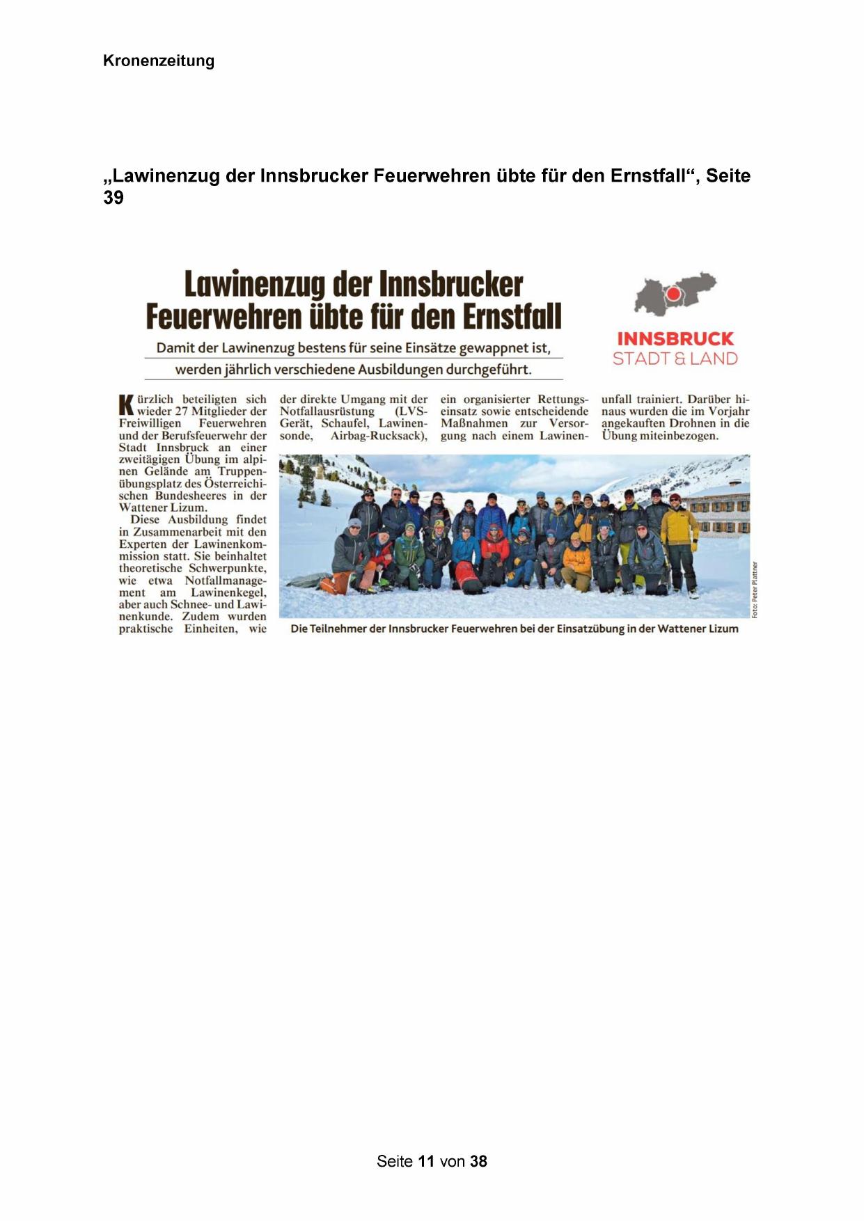 „Lawinenzug der Innsbrucker Feuerwehren übte für den Ernstfall“, Seite