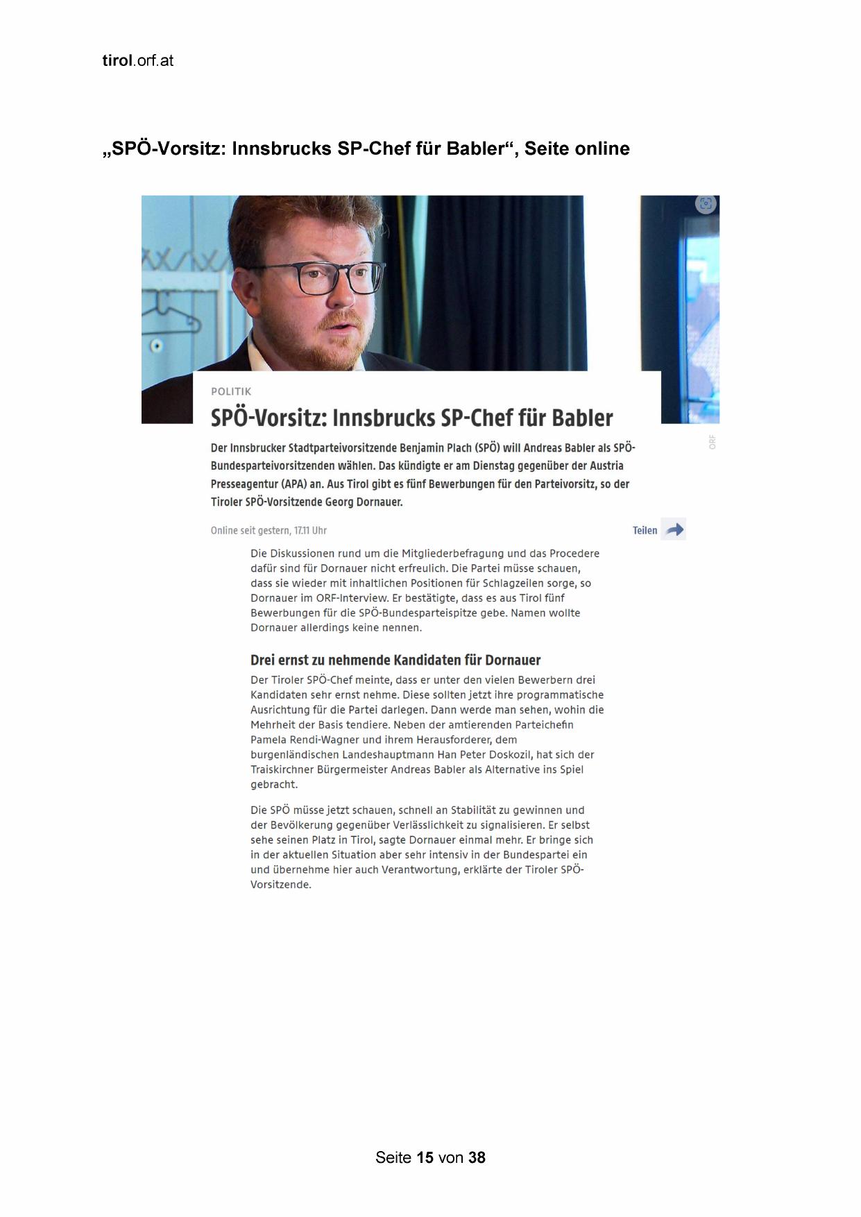 „SPÖ-Vorsitz: Innsbrucks SP-Chef für Babler“, Seite online