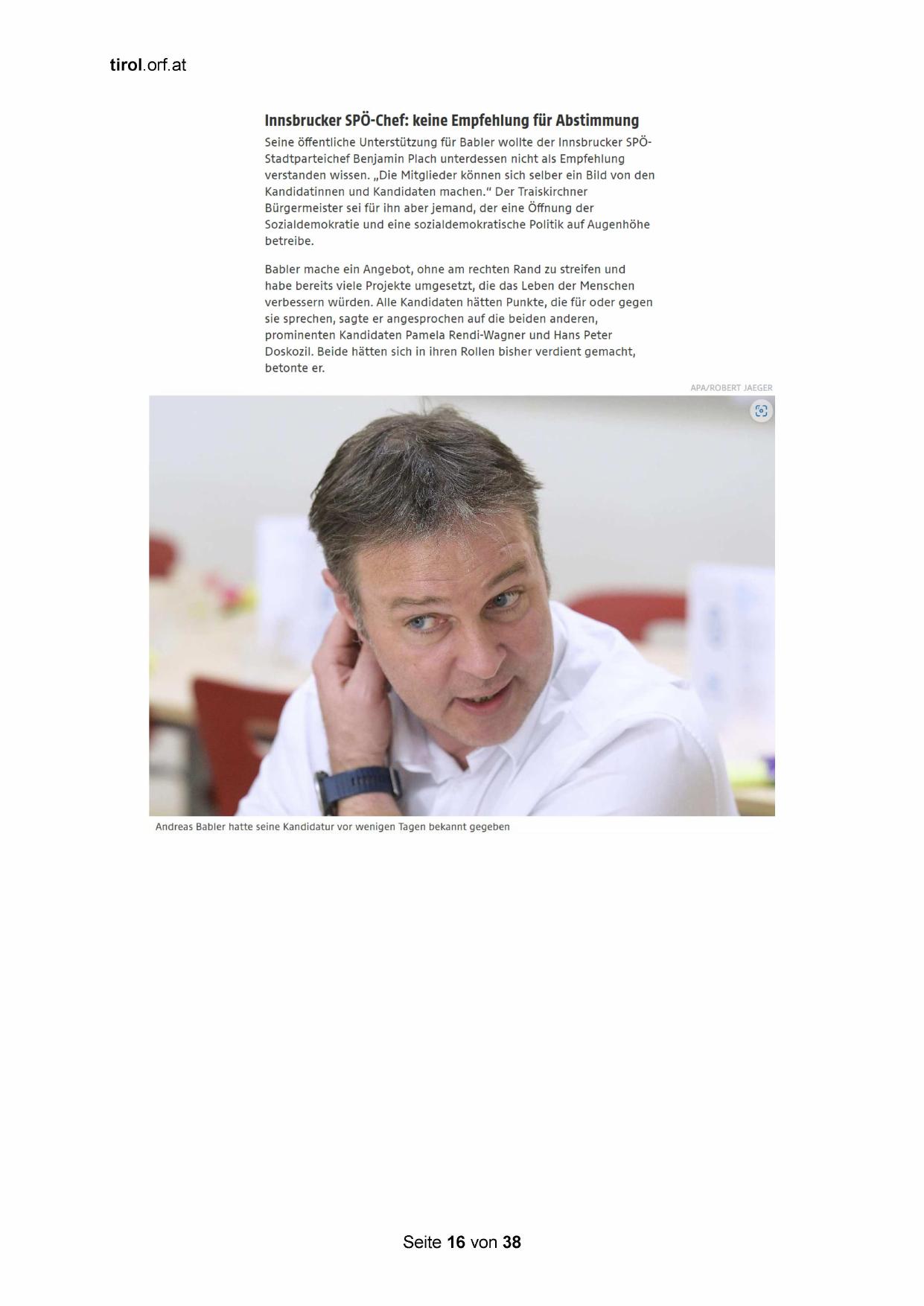 Seine öffentliche Unterstützung für Babler wollte der Innsbrucker SPÖ-