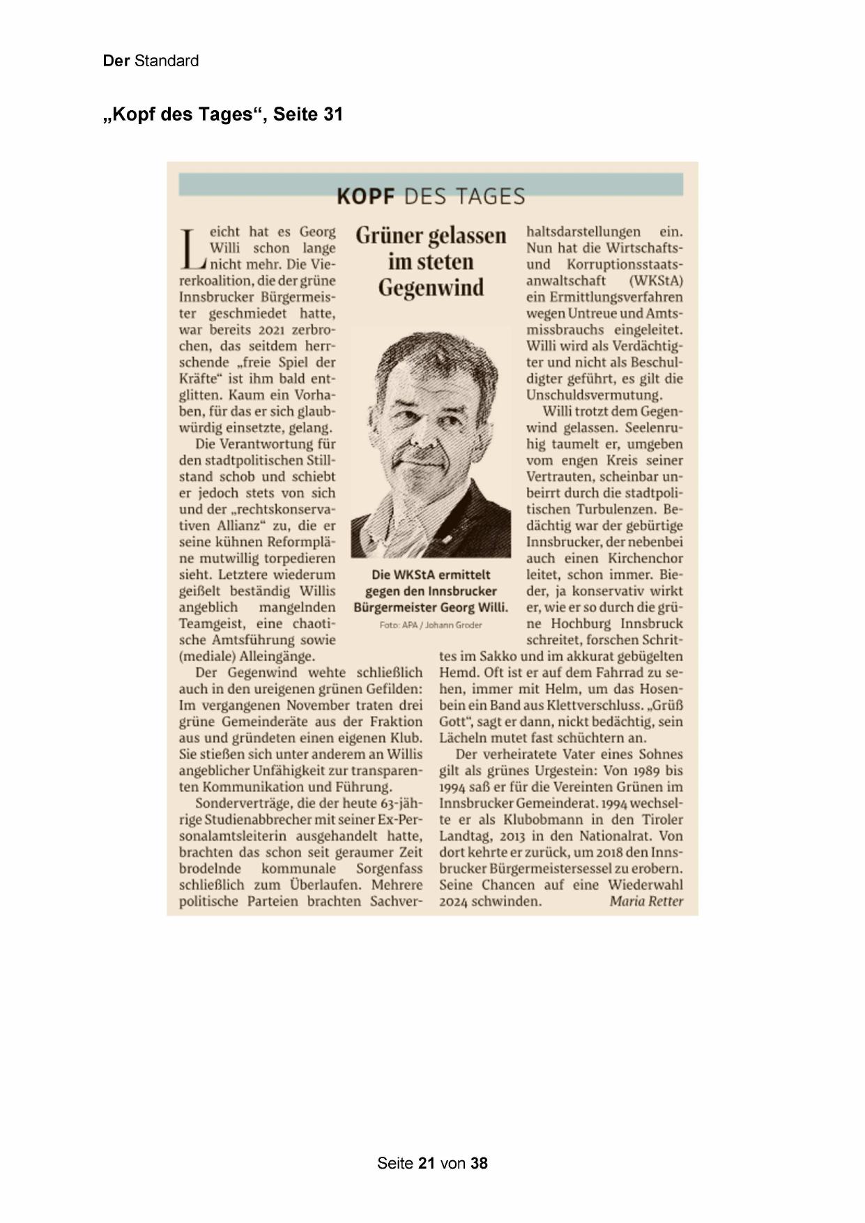 Innsbrucker Bürgermeis- G€g€llWllld ein Ermittlungsverfahren