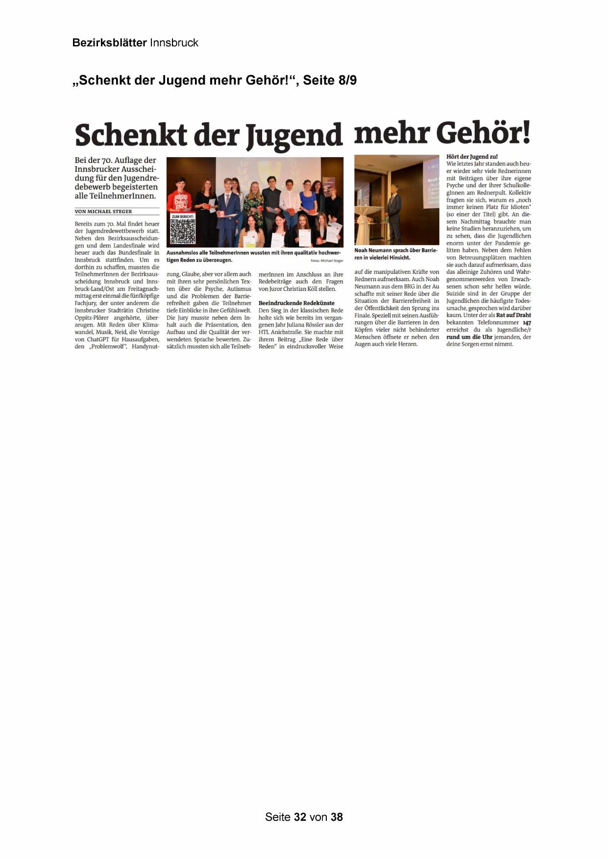 Innsbrucker Ausscheidung für den Jugendredebewerb begeisterten