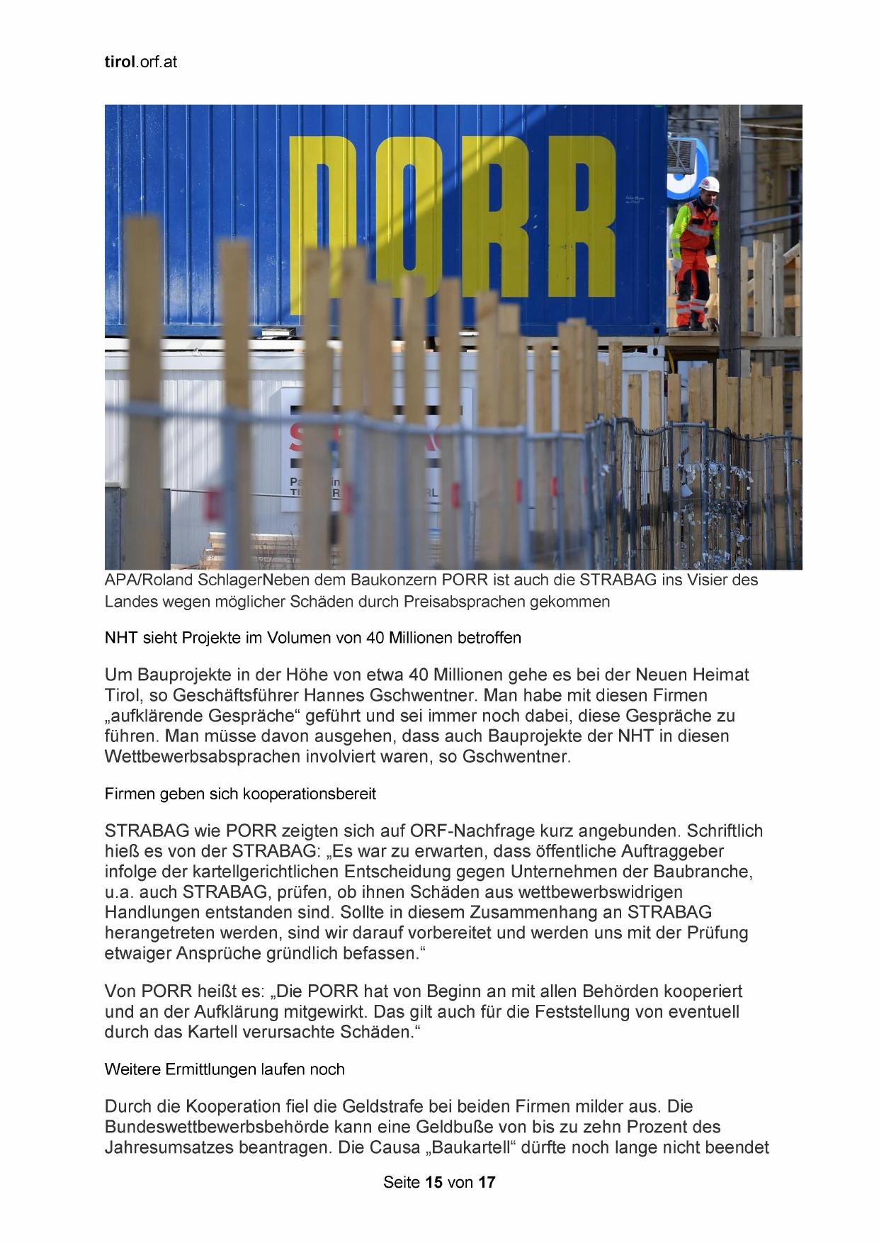 Von PORR heißt es: „Die PORR hat von Beginn an mit allen Behörden kooperiert