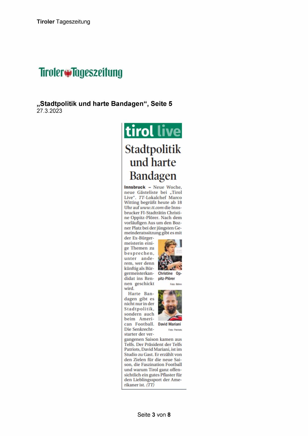 Uhr auf www.tt.com die Innsbrucker FI-Stadträtin Christine Oppitz-Plörer. Nach dem