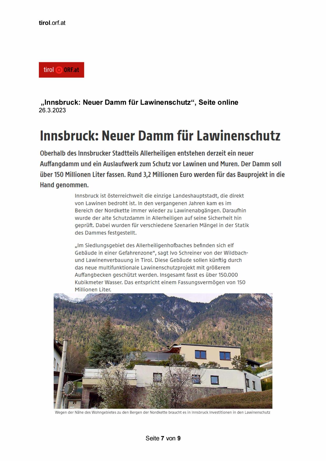 „Innsbruck: Neuer Damm für Lawinenschutz“, Seite online