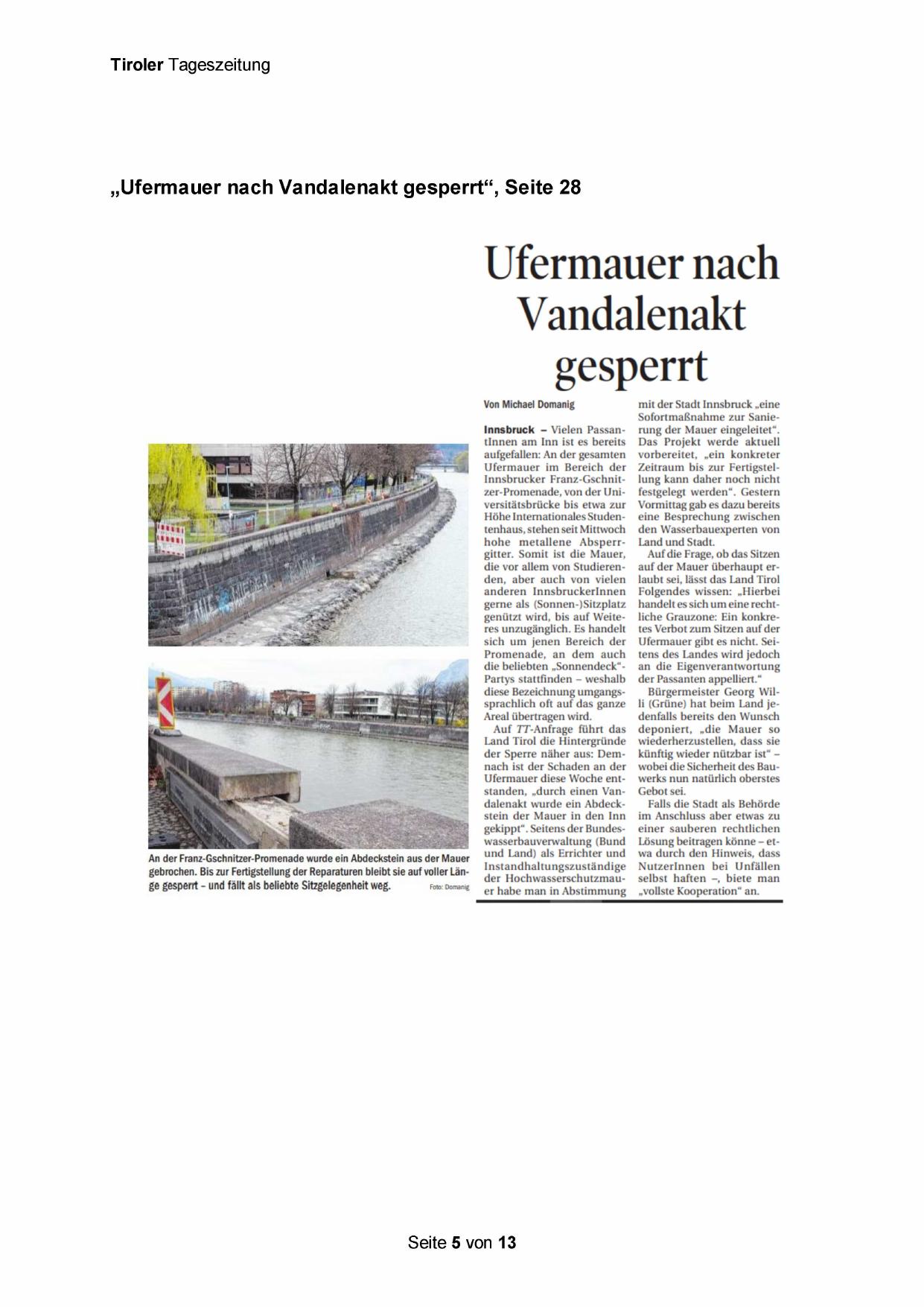 „Ufermauer nach Vandalenakt gesperrt“, Seite 28