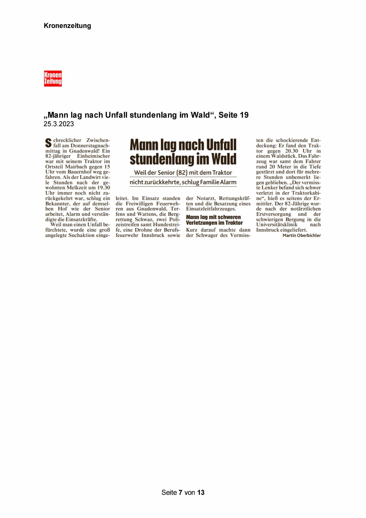 „Mann lag nach Unfall stundenlang im Wald“, Seite 19
