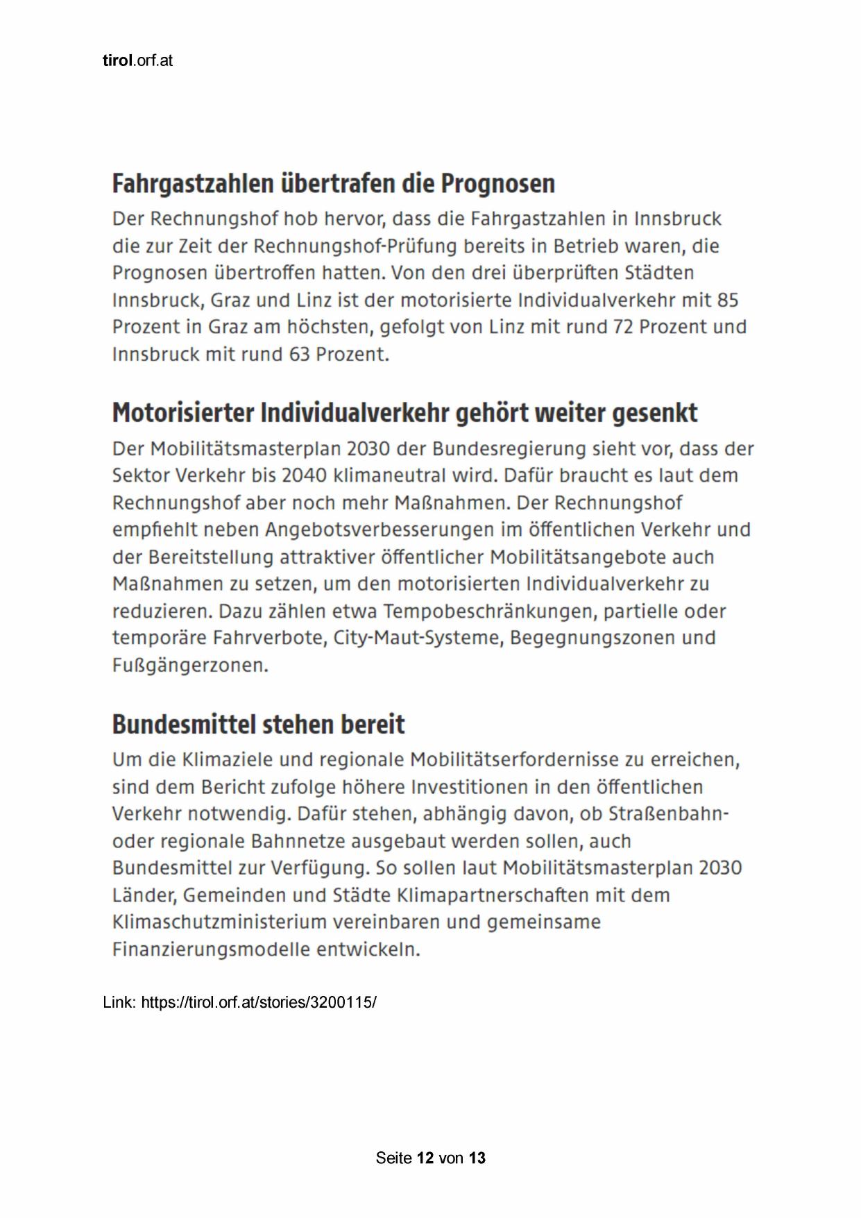 Der Rechnungshof hob hervor, dass die Fahrgastzahlen in Innsbruck