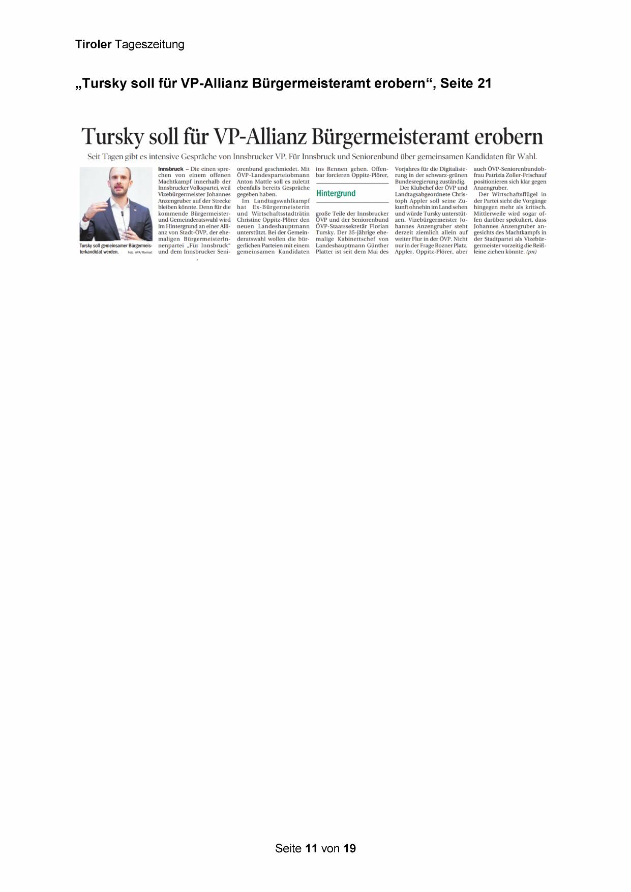 „Tursky soll für VP-Allianz Bürgermeisteramt erobern“, Seite 21