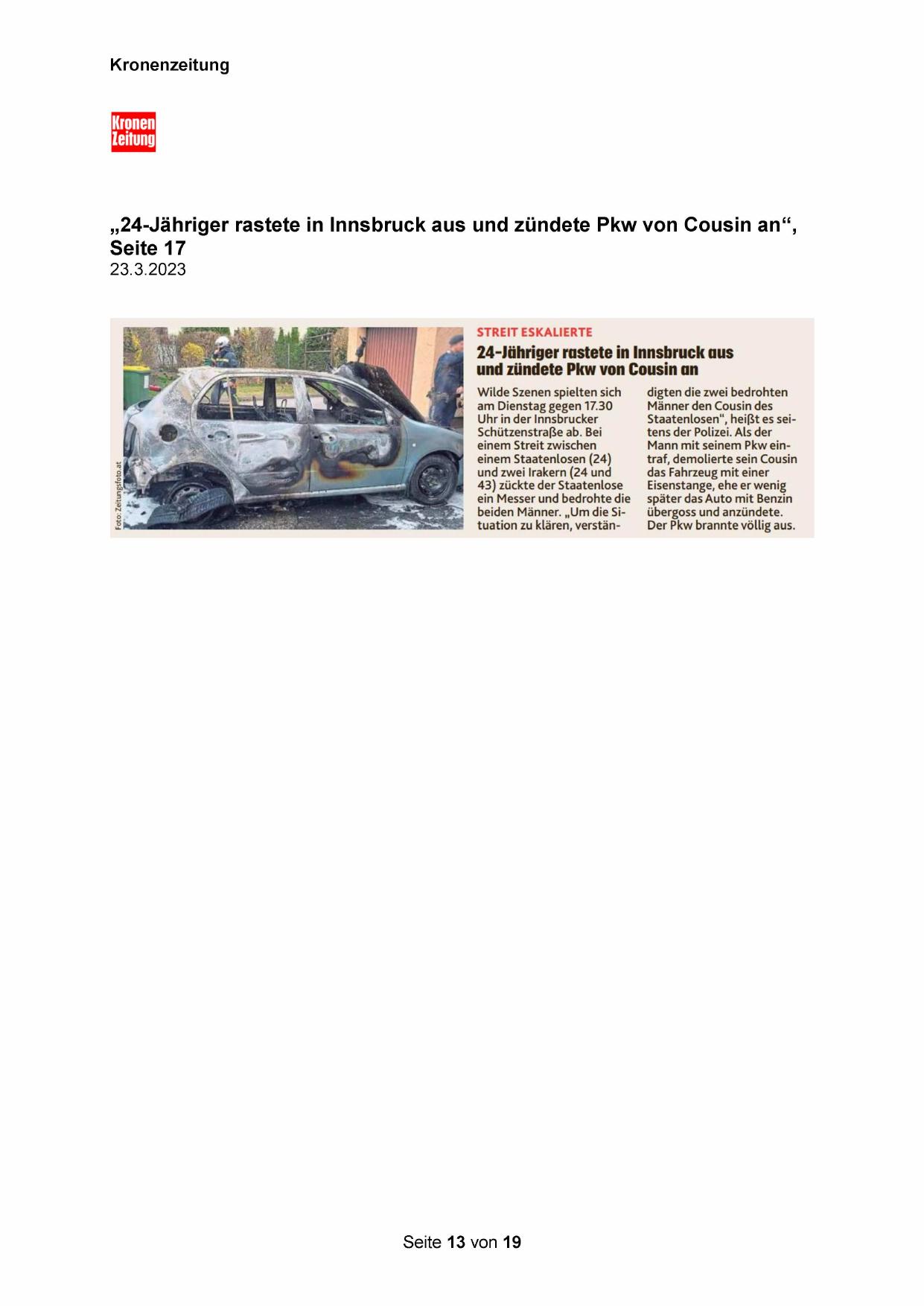 „24-Jähriger rastete in Innsbruck aus und zündete Pkw von Cousin an“,