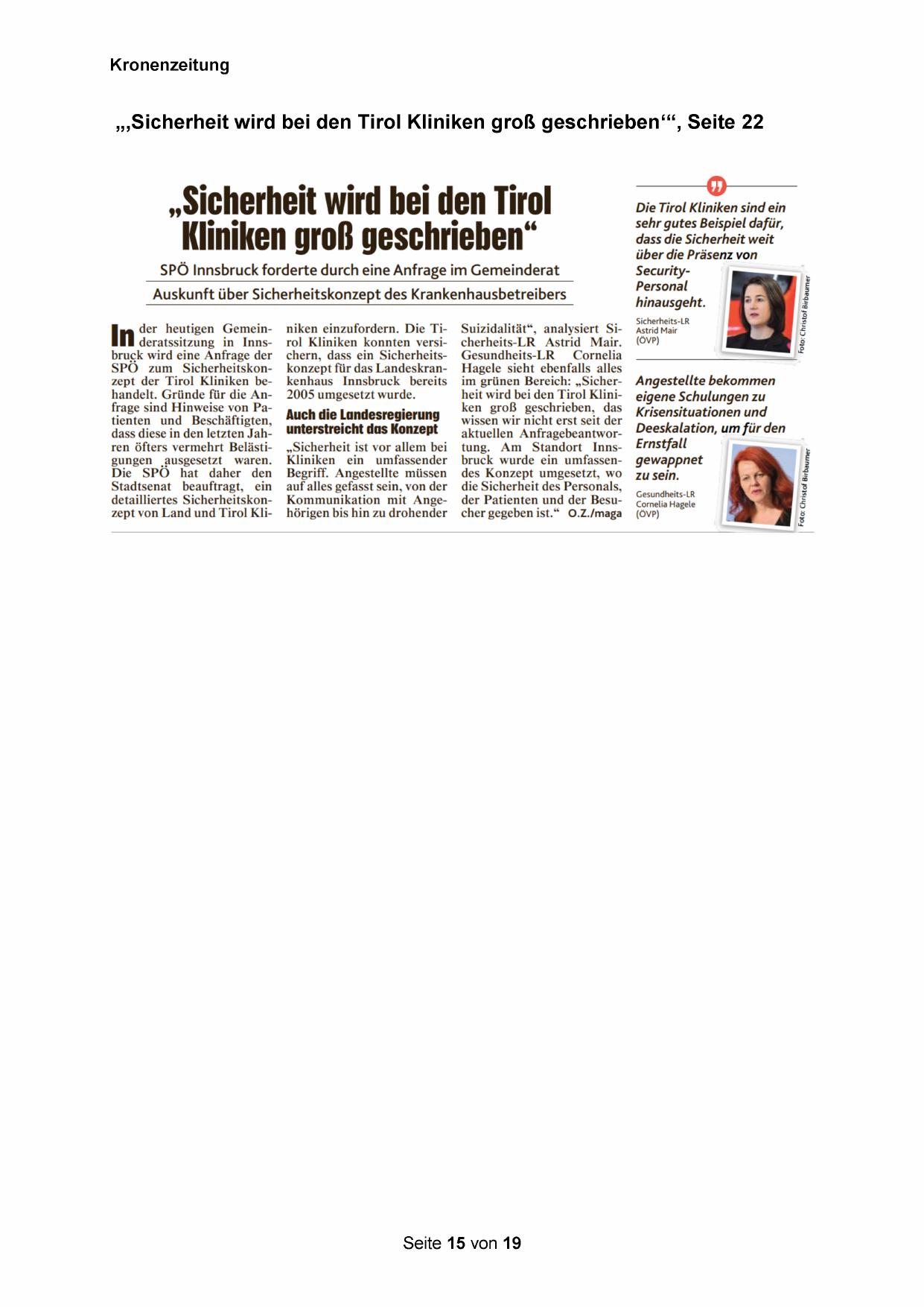 „‚Sicherheit wird bei den Tirol Kliniken groß geschrieben‘“, Seite 22