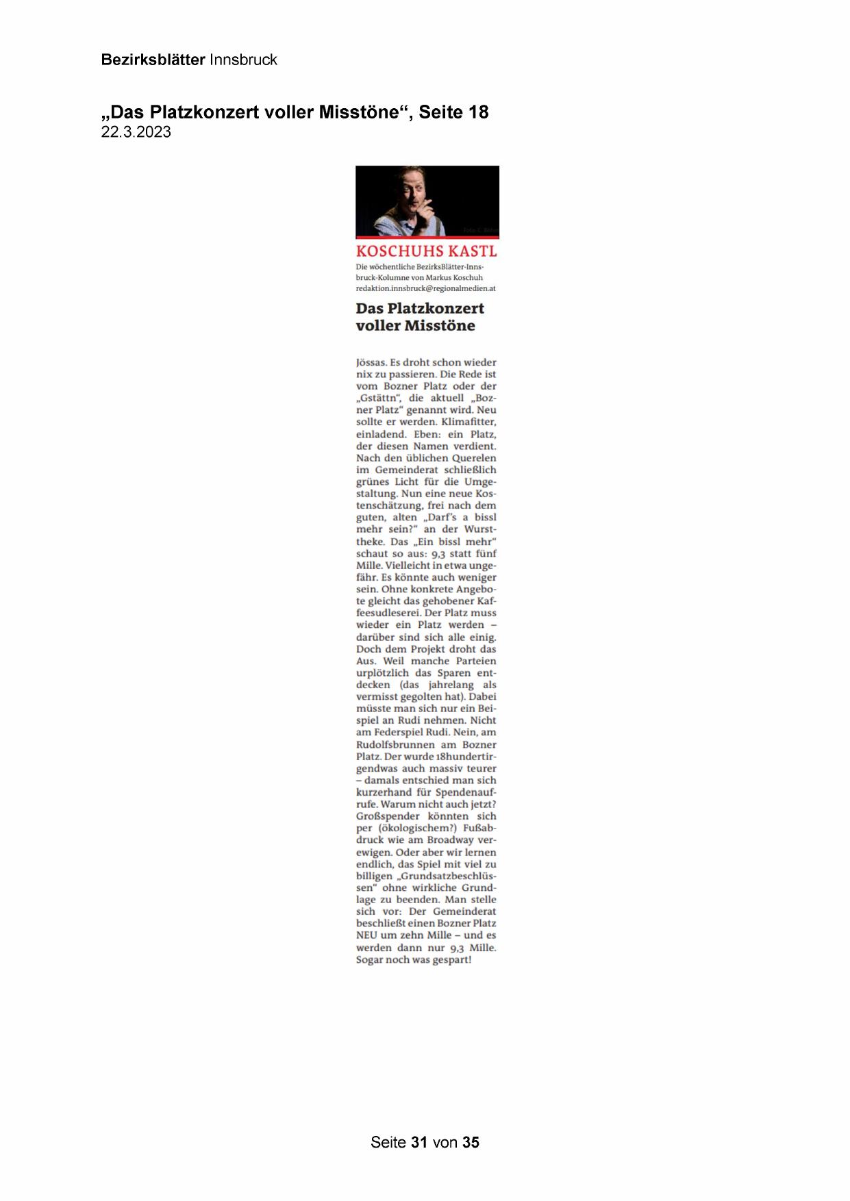 „Gstättn“, die aktuell „Bozner Platz“ genannt wird. Neu