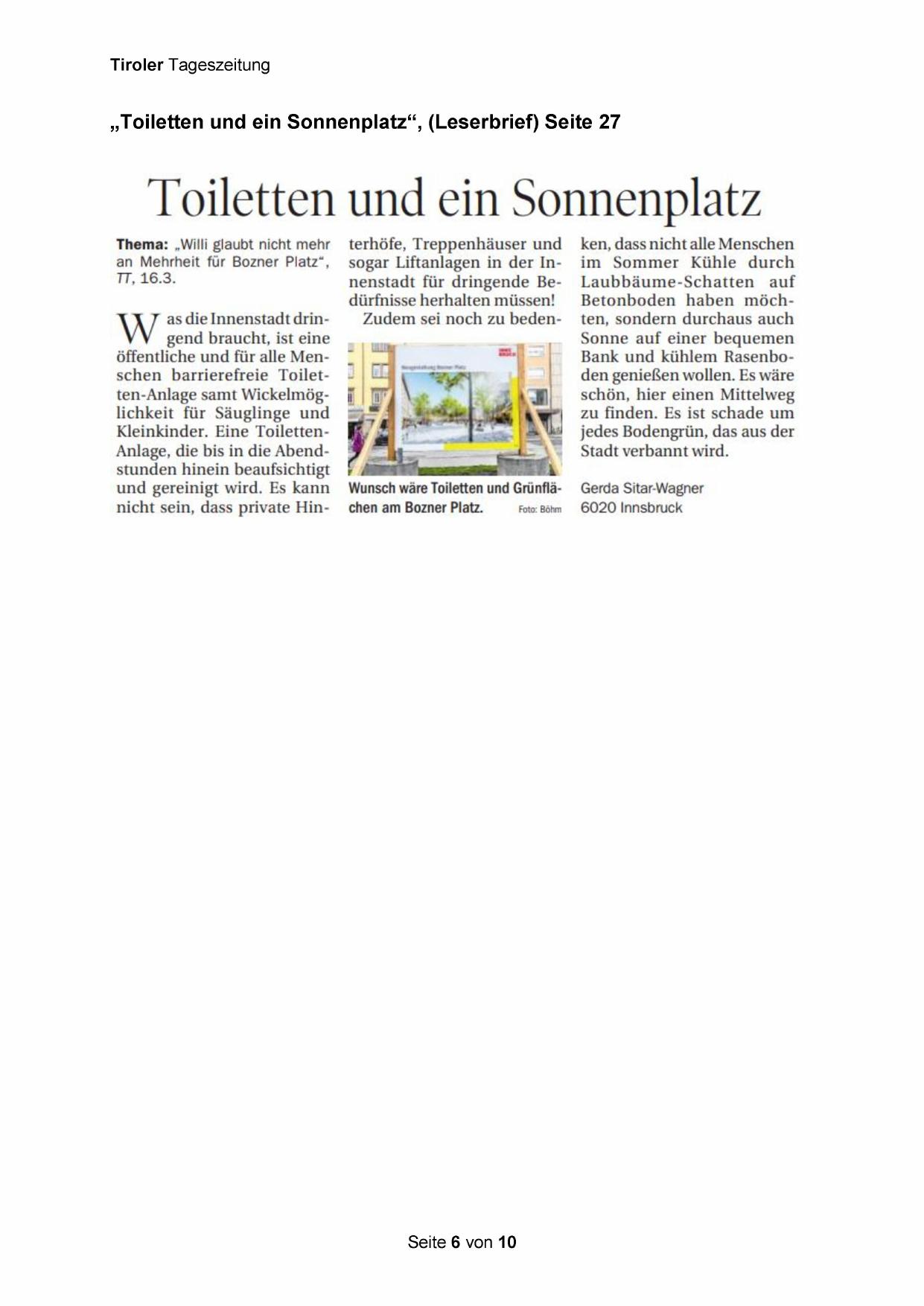 „Toiletten und ein Sonnenplatz“, (Leserbrief) Seite 27