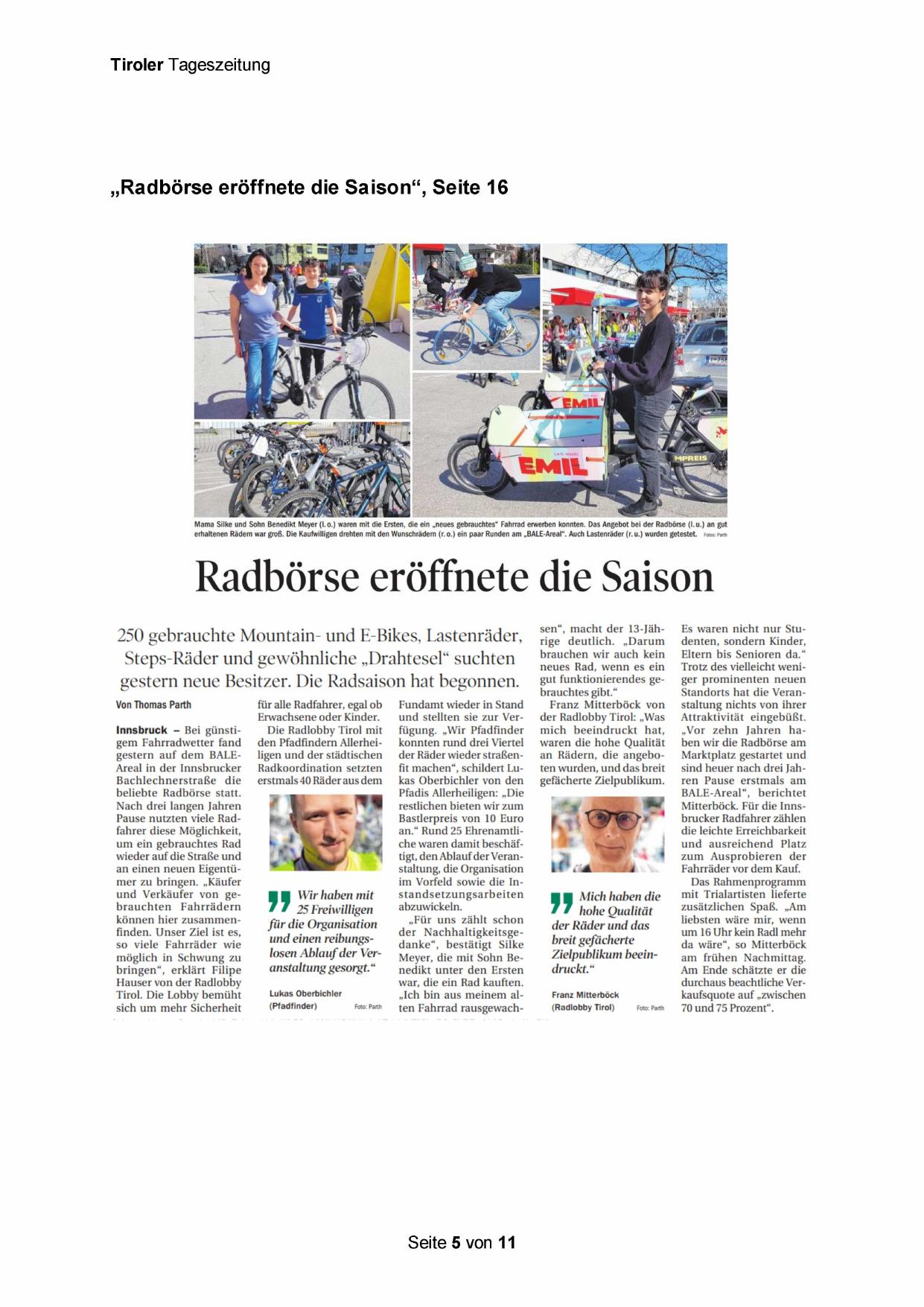 „Radbörse eröffnete die Saison“, Seite 16